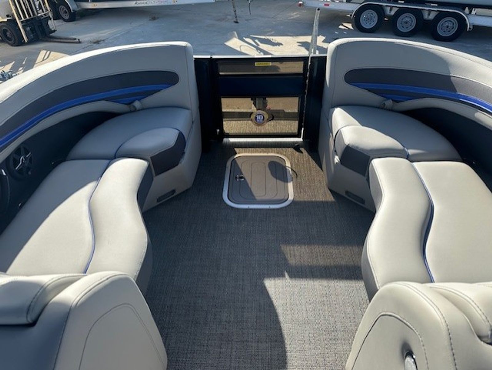 The Barletta Corsa 23UC is loaded with premium features that elevate your boating experience. The double bimini setup, including an additional power bimini, provides versatile shade options, so you can enjoy sunny days without worrying about overheating. The 25-inch transom enhances stability and ride comfort, while the anchor storage at the bow gate offers a convenient spot to stow your anchor, keeping the deck clutter-free.Safety is a top priority, with stainless steel safety stanchions and chains ensuring secure movement around the boat. The Blue Sapphire Railskin color gives the exterior a striking, modern look, complemented by white underdeck and underwater lighting that creates a captivating ambiance during evening cruises. The Amore Gray flooring adds a touch of sophistication and is designed for durability and easy maintenance, making it ideal for active boaters.