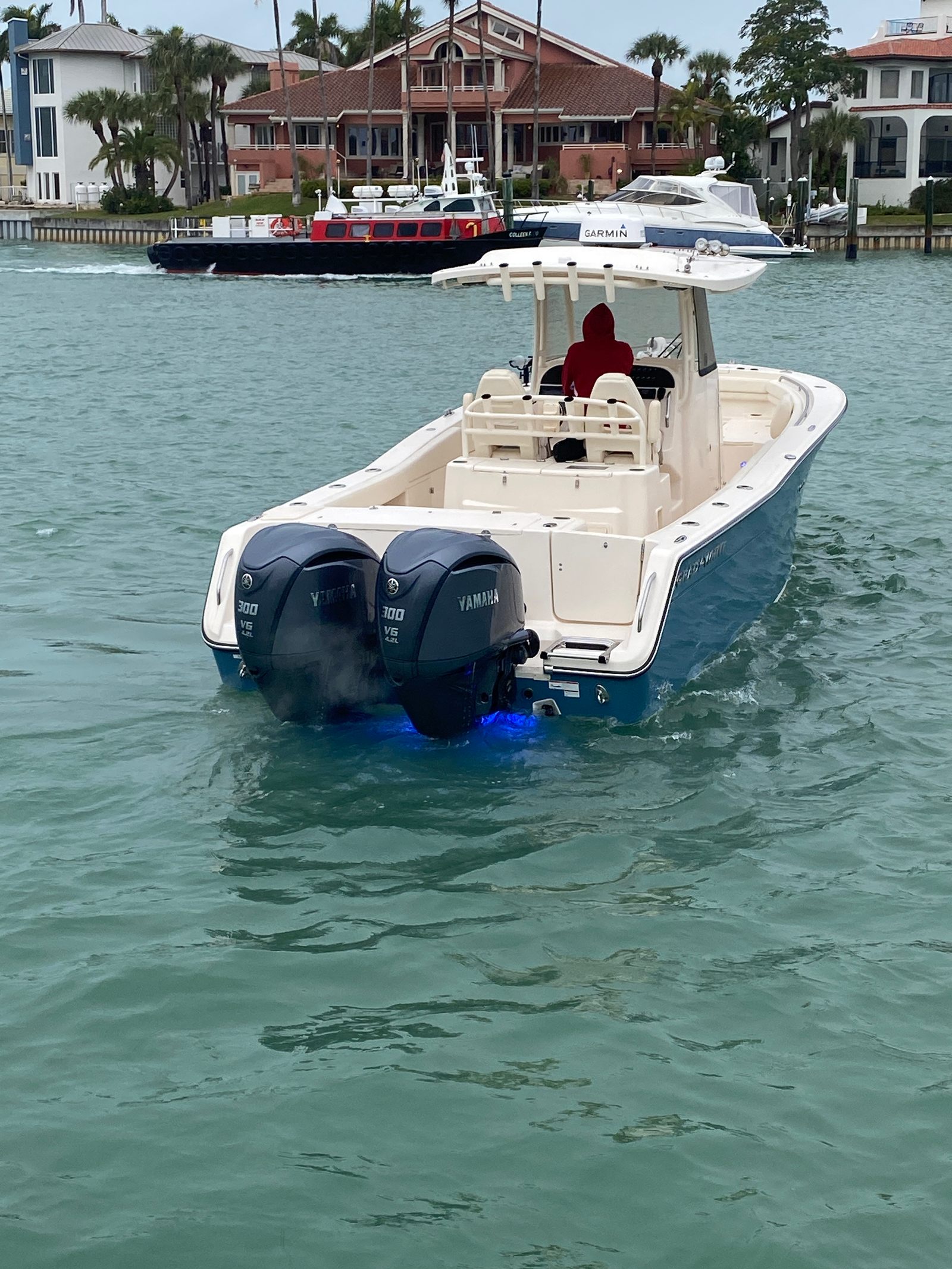 • Twin Yamaha F300 DEC (Digital Electronic Controls): Upgraded gray engines with just 499 confirmed hours. Always serviced annually by certified Yamaha technicians at Quality Boats.