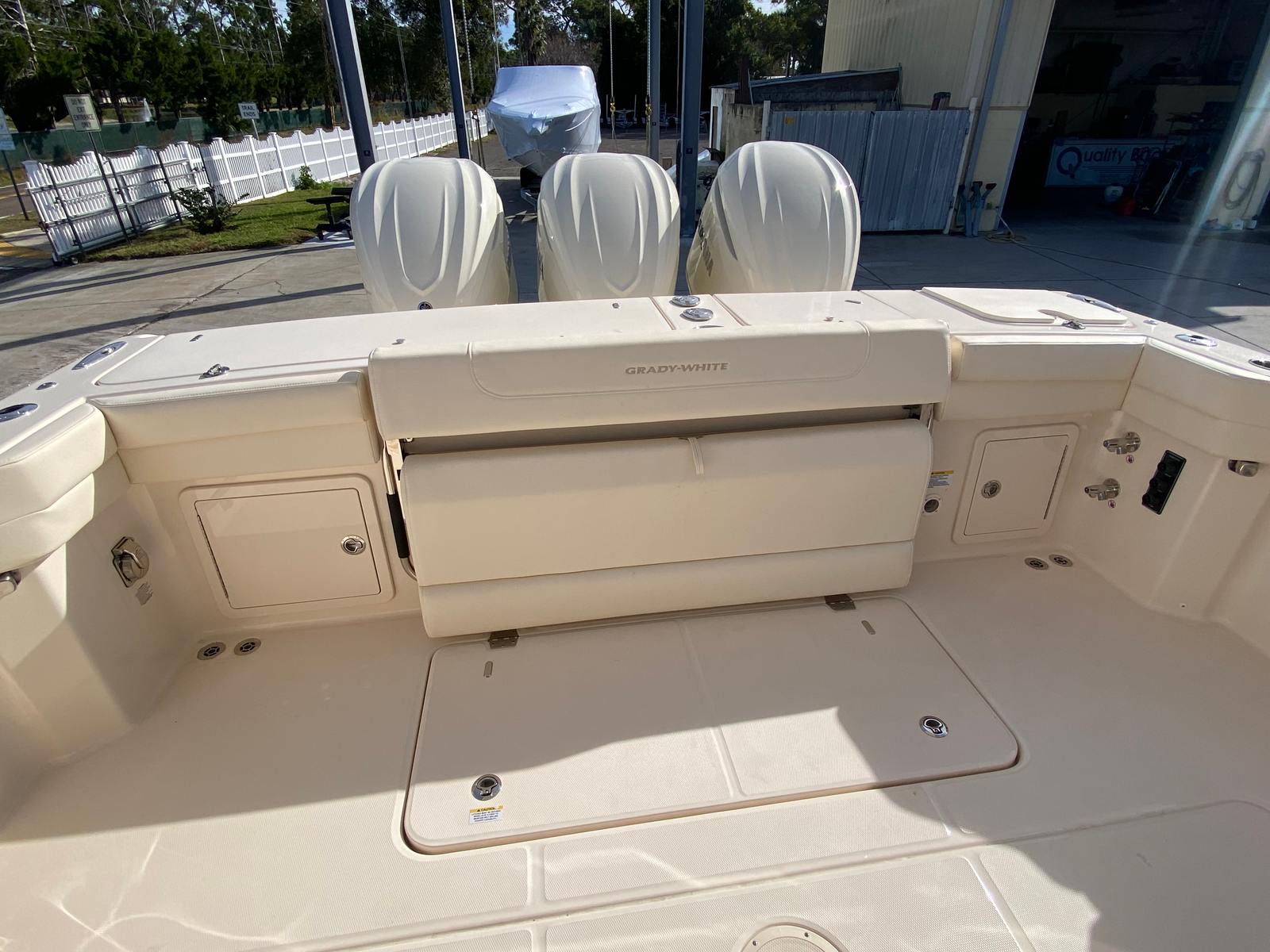 The Grady-White Freedom 345 is designed with practicality in mind, making ownership a breeze. Its generous length and smart layout provide ample storage for gear, supplies, and personal items, ensuring that everything you need is always within reach. Docking is simplified by the boat’s responsive handling and powerful triple-engine configuration, allowing for easy maneuvering in tight spaces.Fuel efficiency is a hallmark of the Yamaha F350XSB engines, so you can spend more time enjoying the water and less time refueling. The durable Celestial Blue gel coat not only looks stunning but also offers long-lasting protection against the elements, reducing maintenance and preserving the boat’s beauty for years to come. The underwater lights add a practical touch for nighttime docking and enhance safety during evening outings.