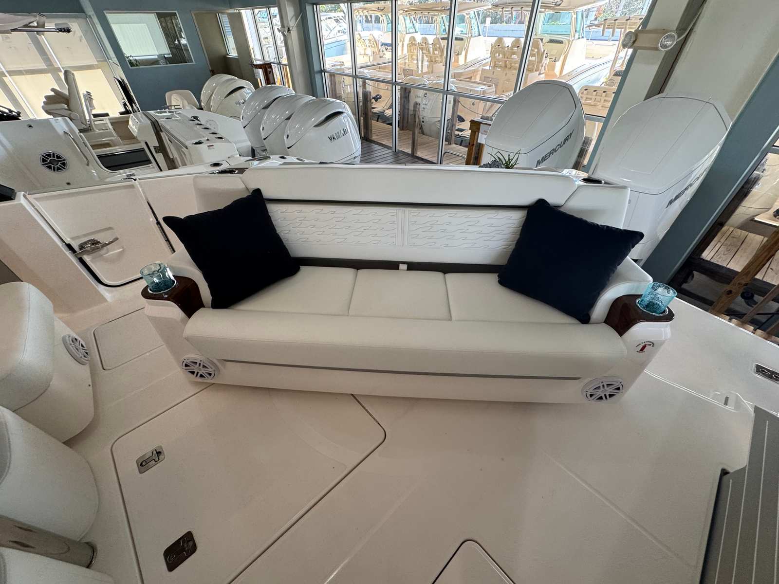 At the heart of the Tiara Yachts 39 LS are twin Mercury 600 V12 engines, delivering a combined 1200 horsepower. This powerhouse configuration ensures exhilarating acceleration, smooth cruising, and impressive top speeds, making every journey both thrilling and efficient. The advanced Mercury JPO (Joystick Piloting for Outboards) system, integrated with the bow thruster, provides effortless maneuverability and precise control, even in tight docking situations. Whether you are navigating open waters or exploring secluded coves, the performance of this yacht is sure to impress.