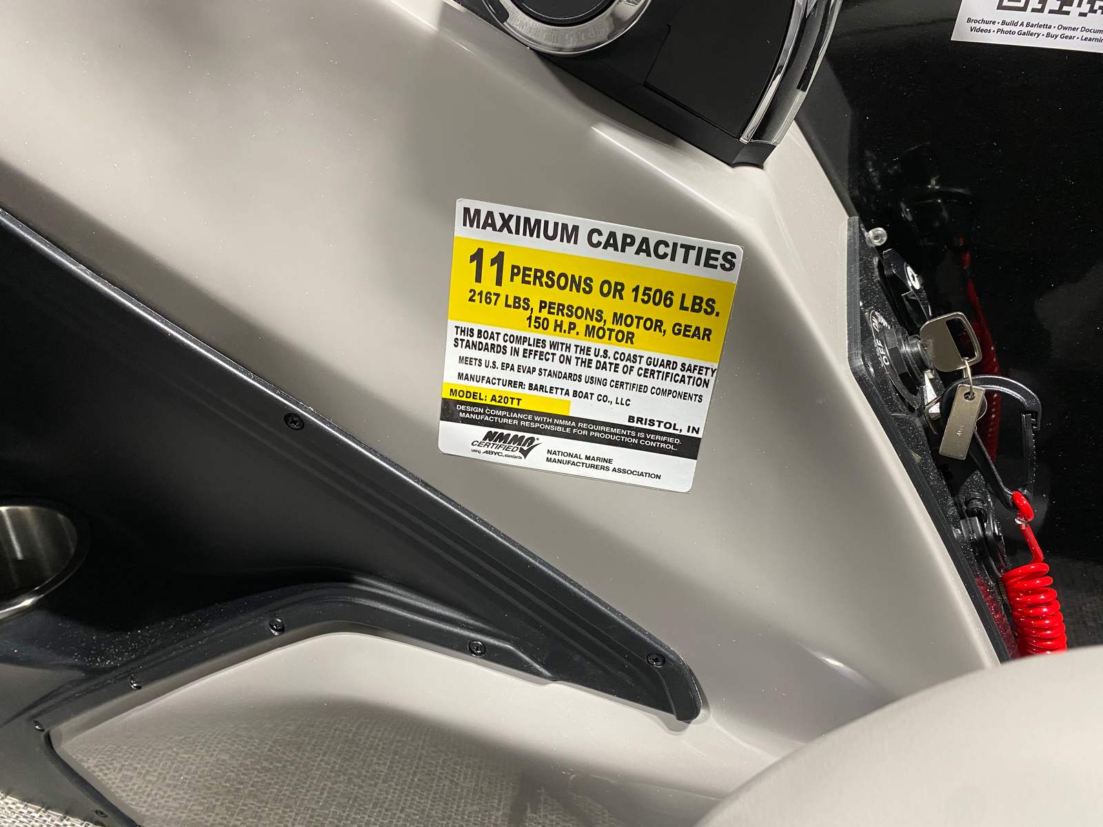 Owning the Barletta Aria A20L means embracing a lifestyle of fun, relaxation, and connection. The spacious deck is perfect for hosting gatherings, enjoying meals, or simply lounging in the sun. The comfortable Tempest Gray furniture invites you to unwind, while the ample floor space ensures everyone has room to move and enjoy themselves. The Triple Toon Package enhances stability, making the boat feel secure even when the water gets lively. With its stylish design and thoughtful layout, the Aria A20L transforms every outing into a special occasion.