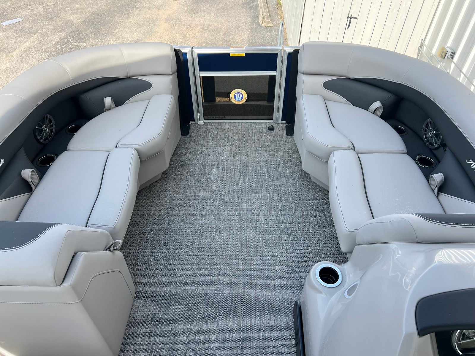 The Barletta Aria A20QC is packed with special features that set it apart from other pontoon boats for sale. At the helm, you’ll find the advanced Hook 5 GPS system, providing accurate navigation and peace of mind as you explore new destinations. The Triple Toon Package Aria enhances stability and performance, allowing for smoother rides and improved handling in various water conditions.Aesthetically, the Railskin Color Aria in Blue Sapphire gives the boat a striking, modern look, while the Amore Gray flooring adds a touch of elegance and comfort underfoot. The furniture, finished in Tempest Gray, is designed for both style and relaxation, offering plush seating and ample space for guests. Every detail, from the rigged engine with stainless steel prop to the Mercury mechanical pre-rigging, reflects Barletta’s dedication to quality and innovation.