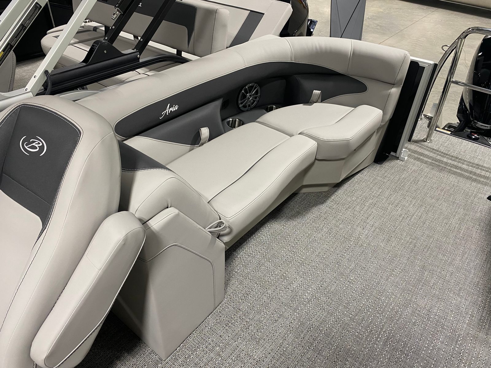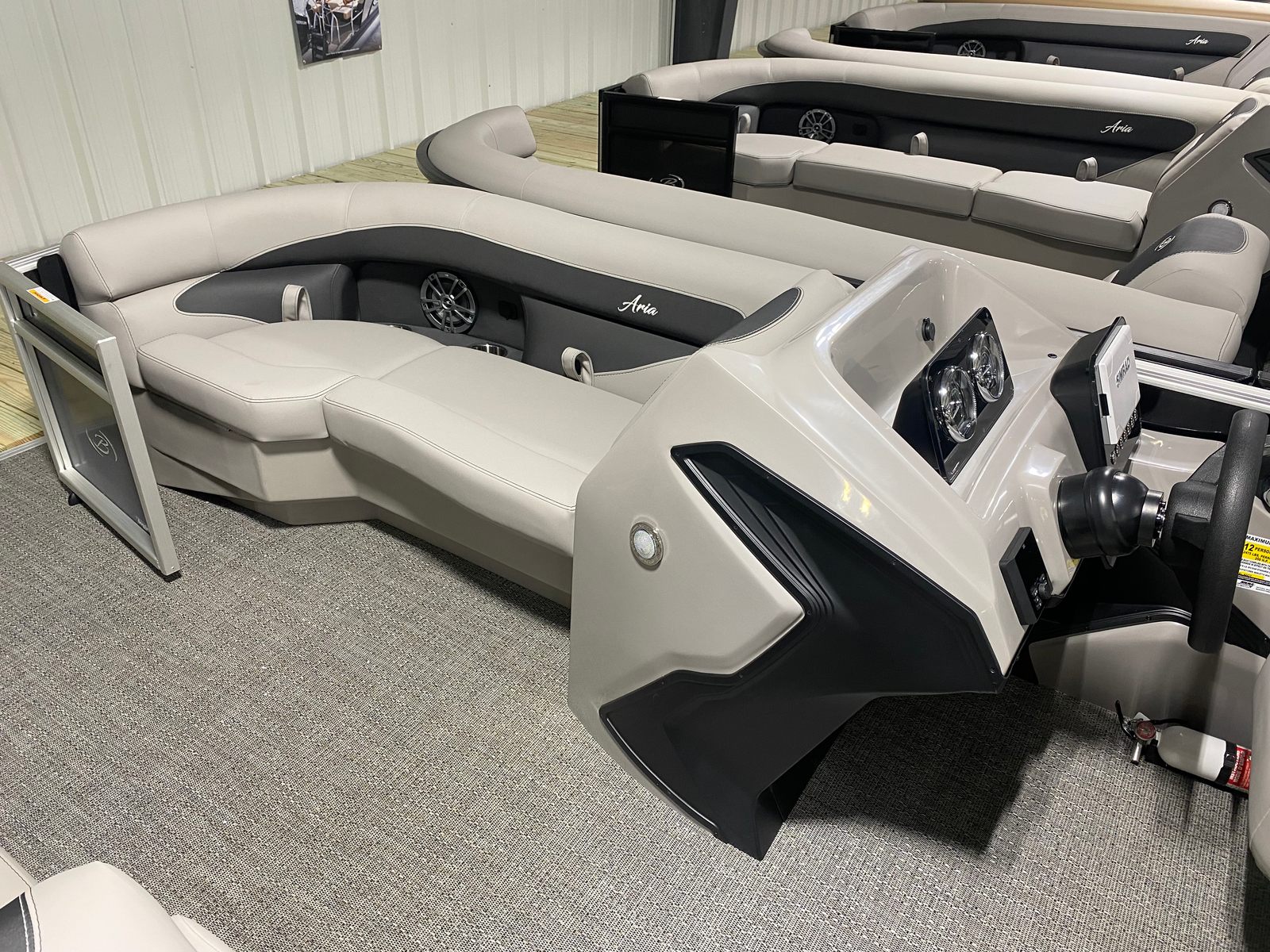 The 2026 Barletta Aria A22QC-Platinum is a brand-new pontoon boat measuring just over 21 feet in length. This versatile vessel is engineered to provide ample space for friends and family, making it ideal for social gatherings, leisurely cruises, or exciting water adventures. The sleek Railskin Color Aria in Black Diamond gives the exterior a sophisticated, modern look, while the Tempest Gray furniture and Amore Gray flooring create an inviting and comfortable atmosphere onboard. With its contemporary design and attention to detail, this Barletta pontoon boat is sure to turn heads wherever you go.