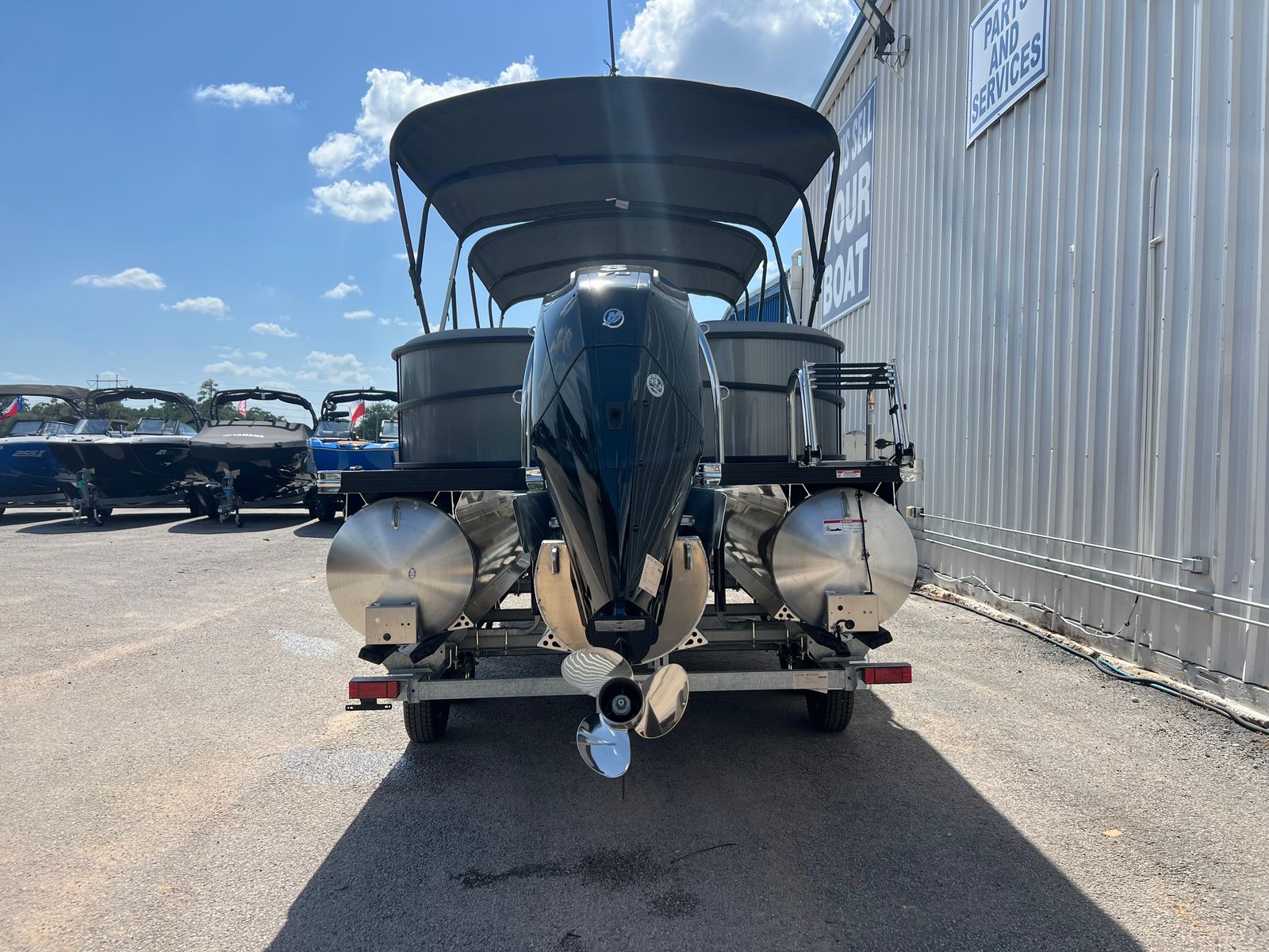 At the heart of the Aria A22QC-Platinum is a single Mercury (M) 200L FourStroke engine, delivering a robust 200 horsepower for smooth and reliable performance. The Mercury engine is paired with mechanical pre-rigging and power assist, ensuring effortless handling and responsive control. The rigging includes a stainless steel prop, enhancing durability and efficiency while maximizing your time on the water. With the Triple Toon Package Aria, this pontoon offers enhanced stability and superior ride quality, making it perfect for both leisurely cruises and more spirited outings. Whether you’re navigating calm lakes or tackling choppier waters, the Barletta Aria A22QC-Platinum provides the power and agility you need for a truly enjoyable boating experience.