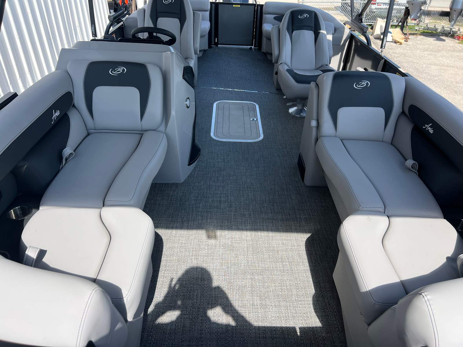 The Barletta Aria A22QC-Platinum is designed with practicality in mind, making ownership both easy and rewarding. The In Floor Midship Storage offers a smart solution for keeping your gear organized and accessible, so you’re always ready for spontaneous adventures. The sturdy stainless steel prop and mechanical power assist ensure smooth docking and maneuvering, even in tight spaces.Fuel efficiency is enhanced by the Mercury FourStroke engine, allowing you to spend more time on the water and less time refueling. The durable Amore Gray flooring is built to withstand the rigors of active use, making cleanup a breeze after a day of fun. Whether you’re storing water sports equipment, fishing gear, or picnic supplies, this pontoon boat adapts to your needs and lifestyle.