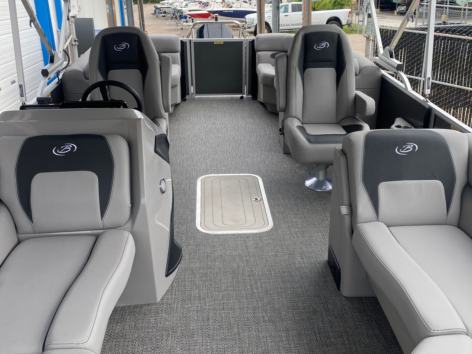 Step aboard the Barletta Aria A22QC-Platinum and discover a world of thoughtful features designed to elevate your boating experience. The Tempest Gray furniture offers plush, supportive seating for you and your guests, while the Amore Gray flooring provides a stylish and durable foundation underfoot. Entertain with ease thanks to the interior table, pedestal, and base, complete with a Yeti-ready cupholder for your favorite beverages. The in-floor midship storage ensures that all your gear and essentials are neatly stowed yet easily accessible, keeping the deck clutter-free.At the helm, the Simrad 7" G07 XSE display puts navigation and system controls at your fingertips, enhancing safety and convenience on every journey. The double bimini canvas offers generous shade, allowing you to enjoy long days on the water in comfort, while the stainless steel flag pole with an American flag adds a patriotic touch to your vessel. The pre-rig Mercury mechanical setup ensures seamless integration with your engine, providing reliable performance and peace of mind.