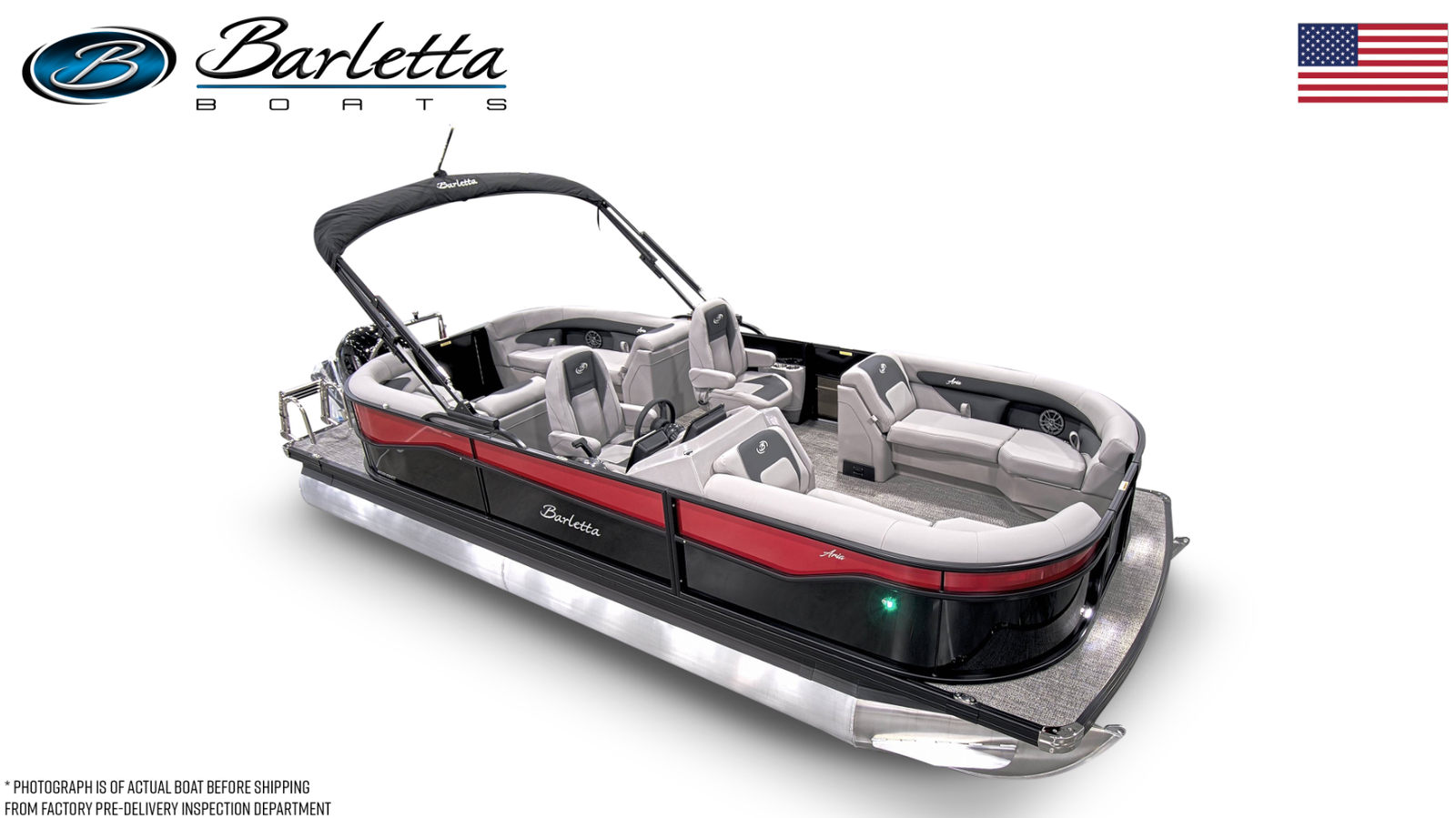 Step aboard the Barletta Aria A22QC and discover a world of comfort and style. The Railskin Color Aria in Black Diamond, complemented by the Macau Red accent, creates a bold and sophisticated look that is sure to turn heads. The Blackout Package Aria adds an extra touch of elegance, giving the boat a sleek, modern appearance. Inside, the Tempest Gray furniture provides plush seating for you and your guests, while the Amore Gray flooring offers both durability and a refined aesthetic.The Triple Toon Package Aria enhances stability and performance, making this pontoon boat ideal for a variety of water activities. The on-board battery charger for the single battery ensures your boat is always ready for action, while the thoughtful construction details reflect Barletta’s commitment to quality and innovation.