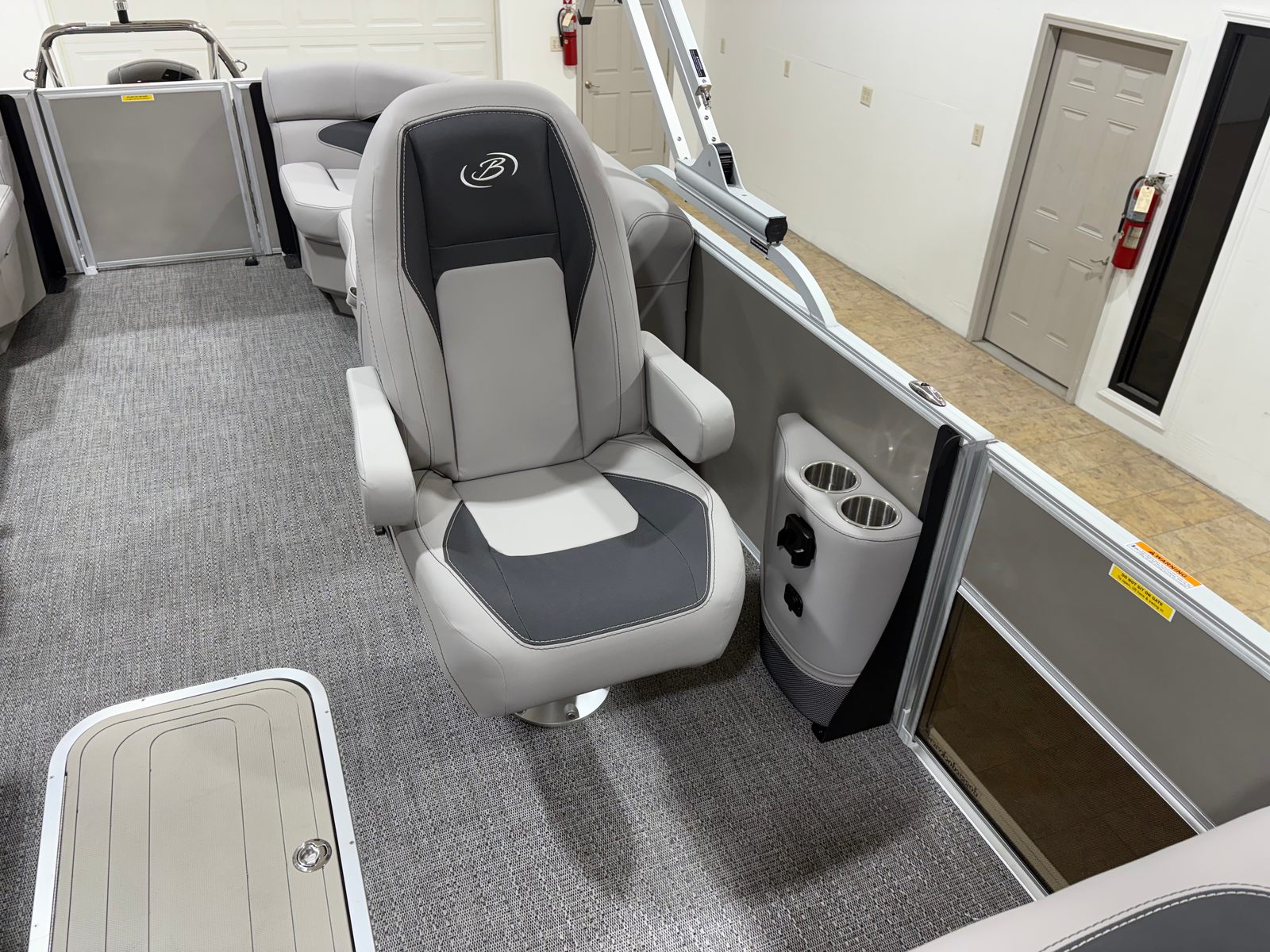 The Barletta Aria A22QC is loaded with special features that enhance both its functionality and aesthetic appeal. The Railskin Color Aria in Champagne, paired with the Gray Moonstone accent, creates a striking exterior that is sure to turn heads. Inside, the Tempest Gray furniture provides a plush and inviting atmosphere, while the Amore Gray flooring adds a touch of elegance and durability underfoot.One of the standout features of this pontoon is the Triple Toon Package Aria, which not only improves performance but also allows for the inclusion of in-floor midship storage. This innovative storage solution is perfect for stowing away gear, water toys, or personal items, keeping the deck clutter-free and organized. The stainless steel flag pole with an American flag adds a patriotic touch to your boating experience, making every outing feel like a celebration.The Barletta Aria A22QC comes pre-rigged for Mercury with mechanical controls, ensuring seamless integration and easy operation. Every detail, from the rigging of the engine with a standard prop to the thoughtful layout of the interior, is designed to maximize your enjoyment and convenience on the water.