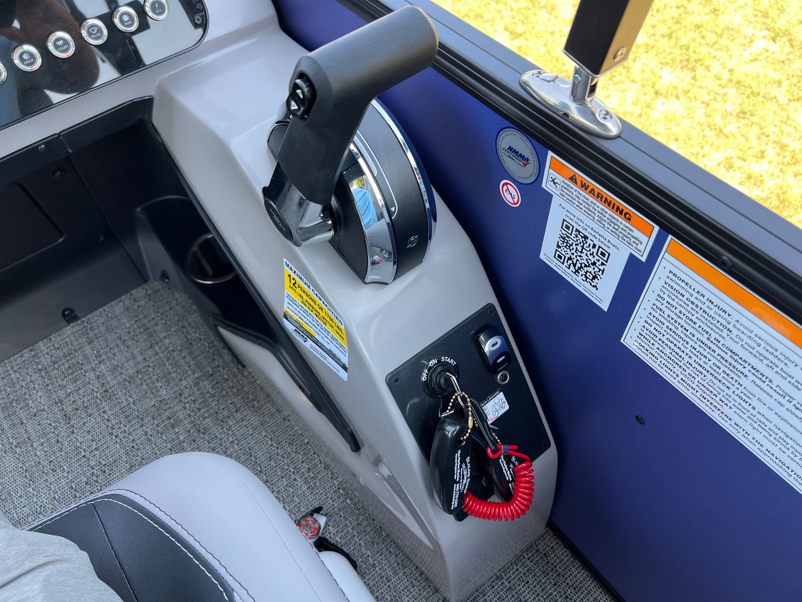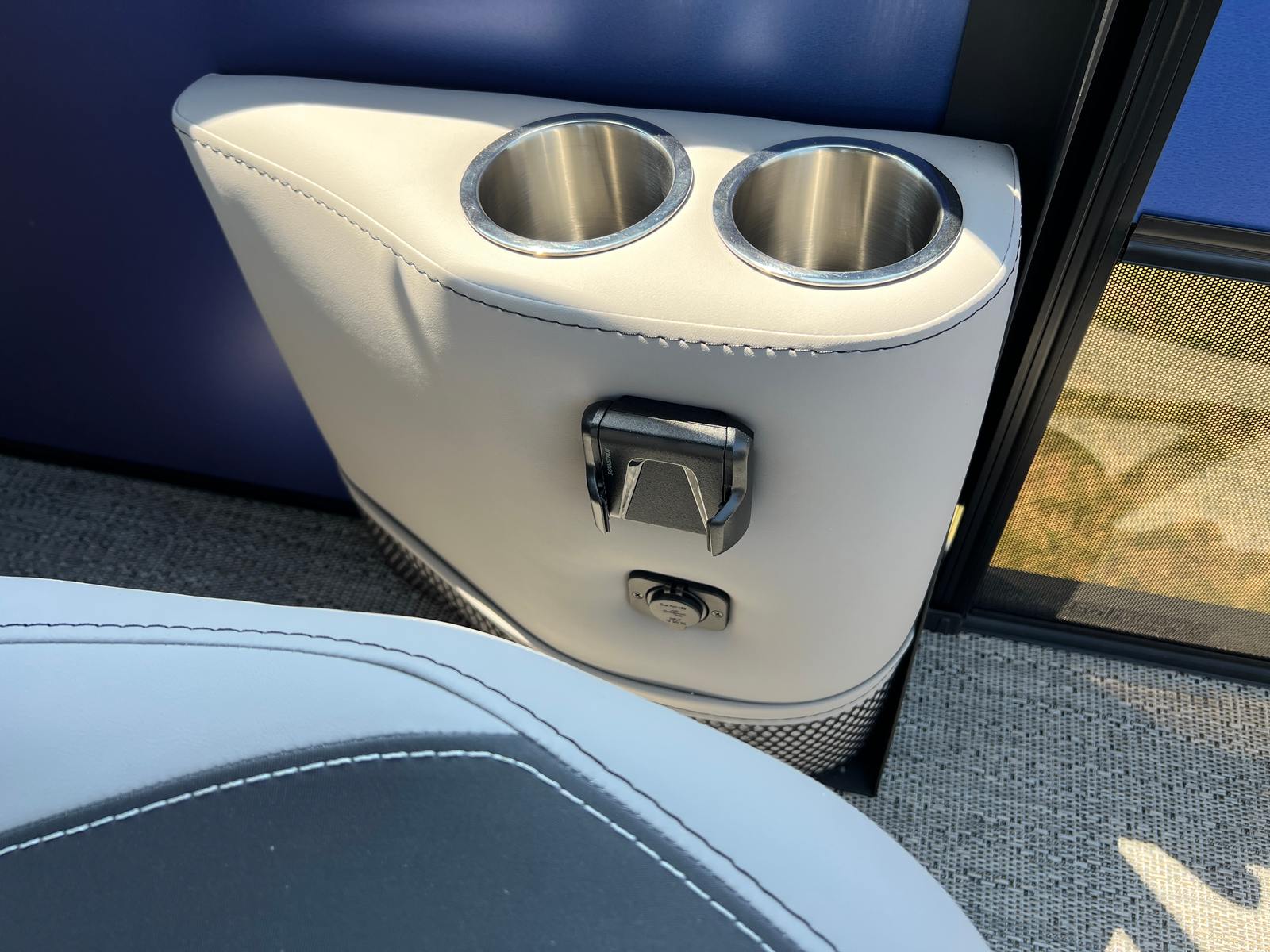 The Barletta Aria A22QC is packed with special features that elevate your boating experience. The Railskin Color Aria in Pacific Matte Blue gives the boat a sophisticated, modern look, while the Blackout Package Aria adds a bold, distinctive touch. Inside, the Tempest Gray furniture provides plush, comfortable seating for you and your guests, complemented by Amore Gray flooring that’s both stylish and easy to maintain. The triple toon package enhances stability and performance, ensuring a smooth and enjoyable ride.Practicality meets elegance with the in-floor midship storage, offering convenient space for stowing gear, water toys, and personal items. The stainless steel flag pole with an American flag adds a patriotic flair, making your boat stand out at every marina or dock. Every detail, from the premium materials to the thoughtful layout, is designed to maximize comfort, convenience, and enjoyment on the water.