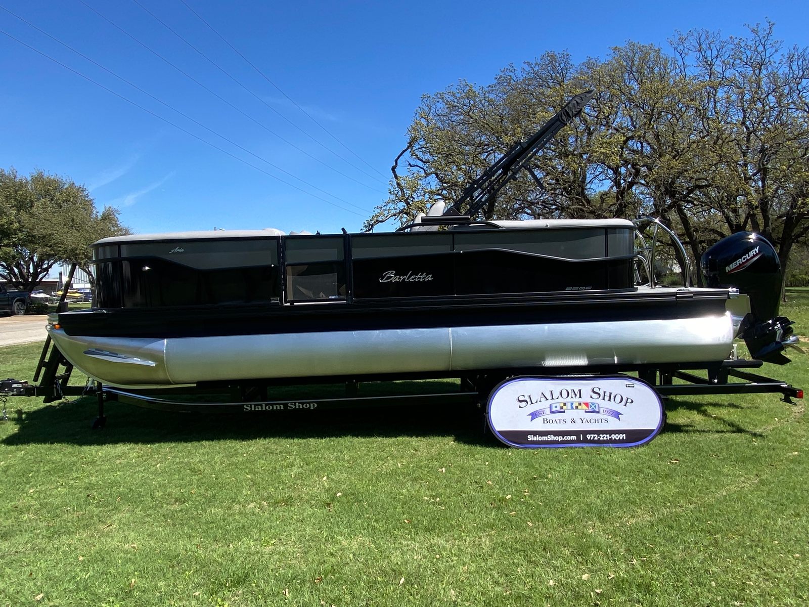 The 2026 Barletta Aria A22QC is more than just a pontoon boat for sale; it is your ticket to a world of adventure, relaxation, and lasting memories. With its striking Black Diamond and Gray Moonstone color scheme, Blackout Package Aria, triple toon stability, and powerful Mercury 150L Four Stroke engine, this Barletta boat for sale offers unmatched style, performance, and versatility. The comfortable Tempest Gray furniture, easy-to-maintain Amore Gray flooring, and patriotic stainless steel flag pole with American flag complete the package, making this pontoon a standout choice for discerning boaters.Do not miss your chance to own the ultimate pontoon experience. Contact your local dealer today to learn more about the Barletta Aria A22QC and discover why this exceptional boat is the perfect addition to your on-the-water lifestyle.