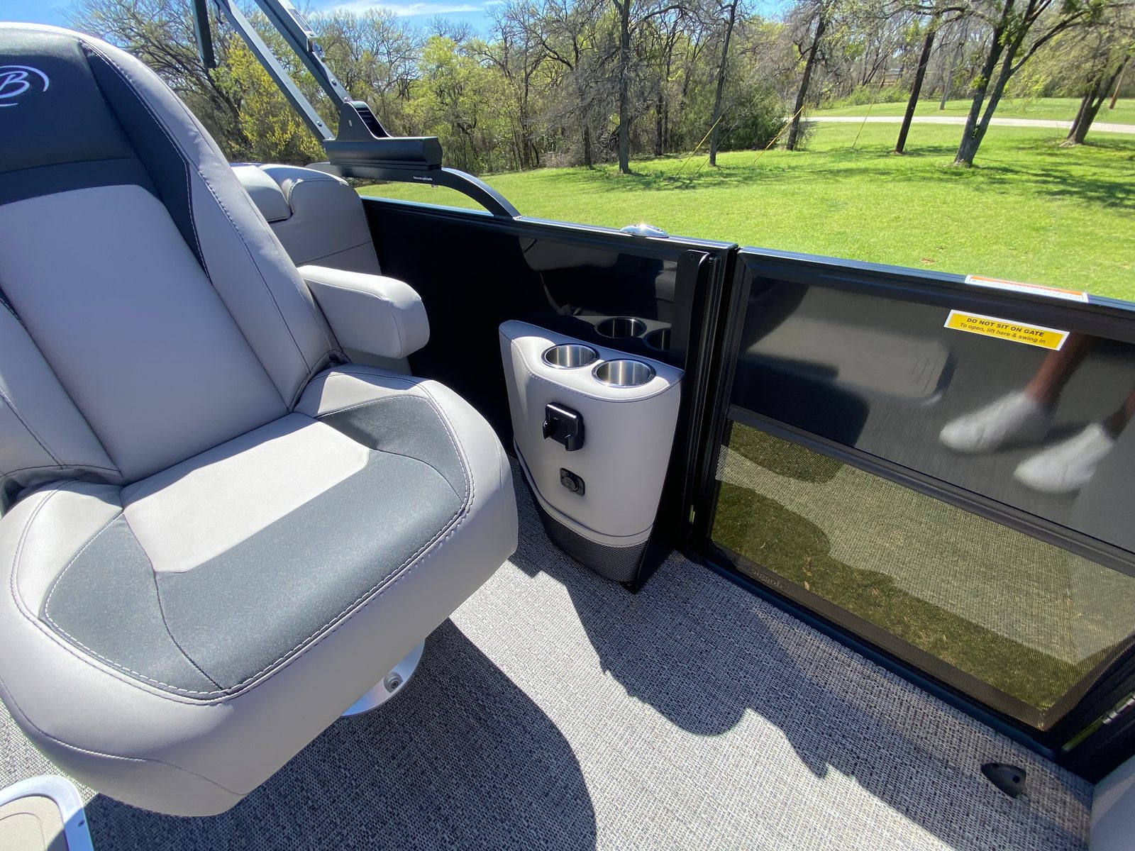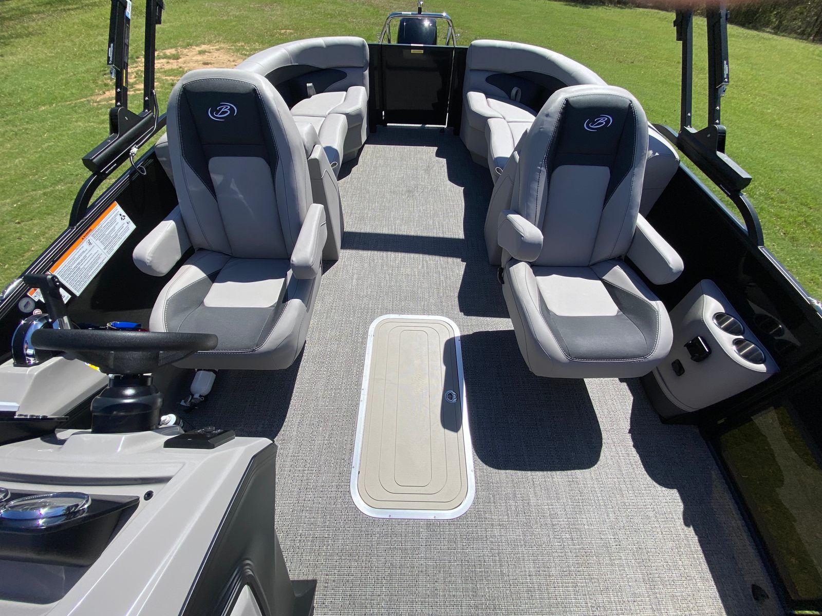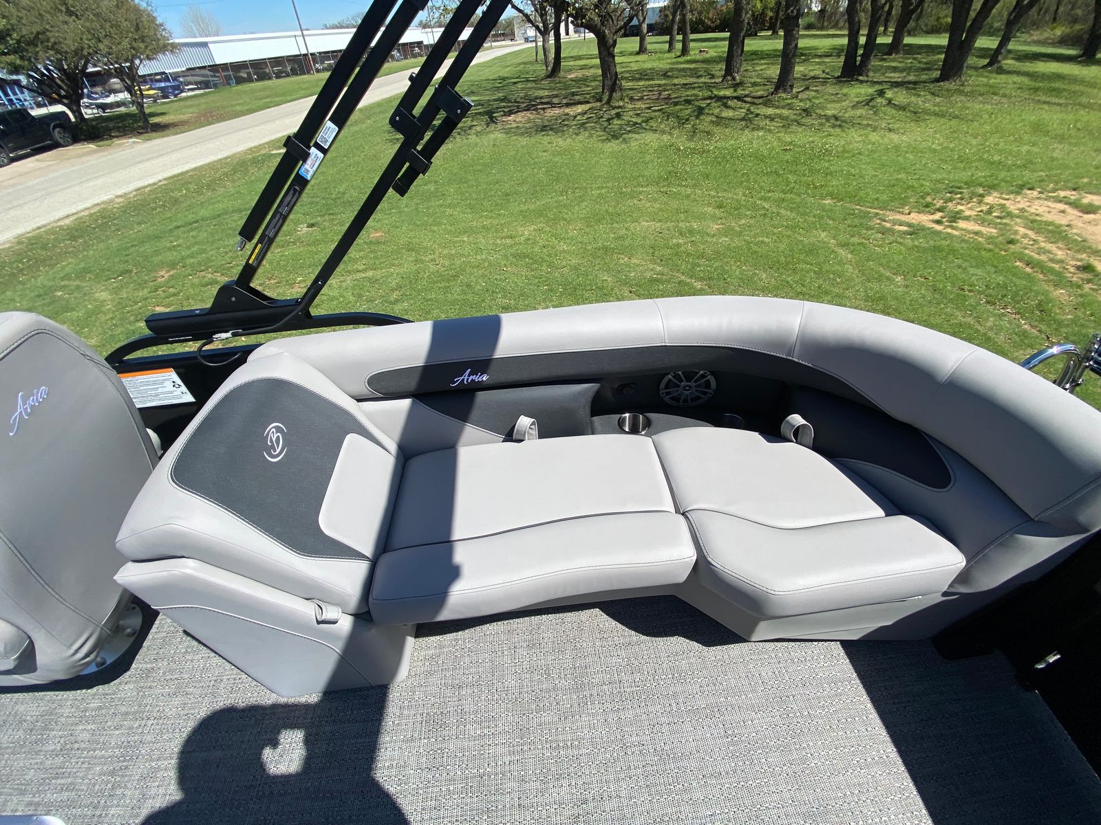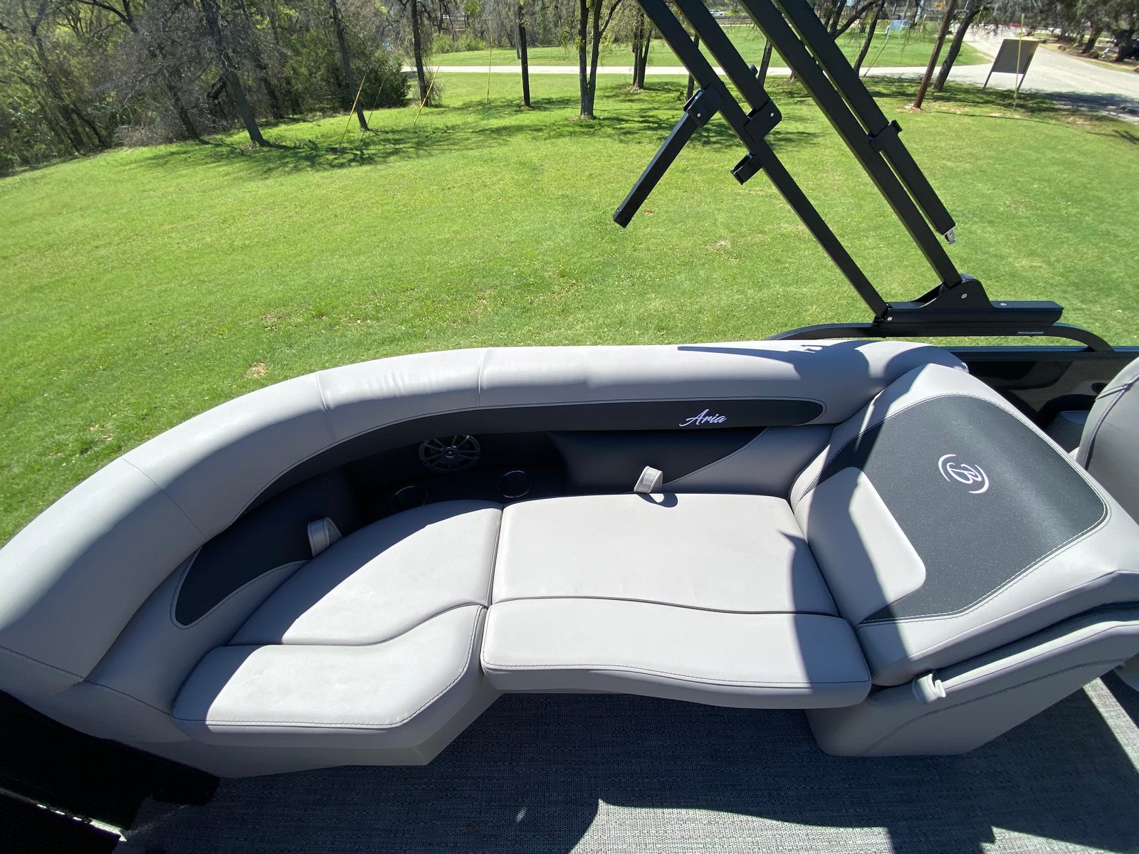 The Barletta Aria A22QC is packed with features designed to enhance your time on the water. The triple toon package provides added stability and buoyancy, allowing for a smoother ride and increased passenger capacity. The railskin color combination of Black Diamond and Gray Moonstone, complemented by the Blackout Package Aria, creates a striking visual statement that sets this pontoon apart from the rest.Step inside, and you will find Tempest Gray furniture that offers both comfort and durability, perfect for long days spent lounging or socializing. The Amore Gray flooring is not only stylish but also easy to clean and maintain, ensuring your pontoon stays looking its best season after season. A stainless steel flag pole with an American flag adds a patriotic touch, making this Barletta boat for sale a proud centerpiece for any gathering on the water.