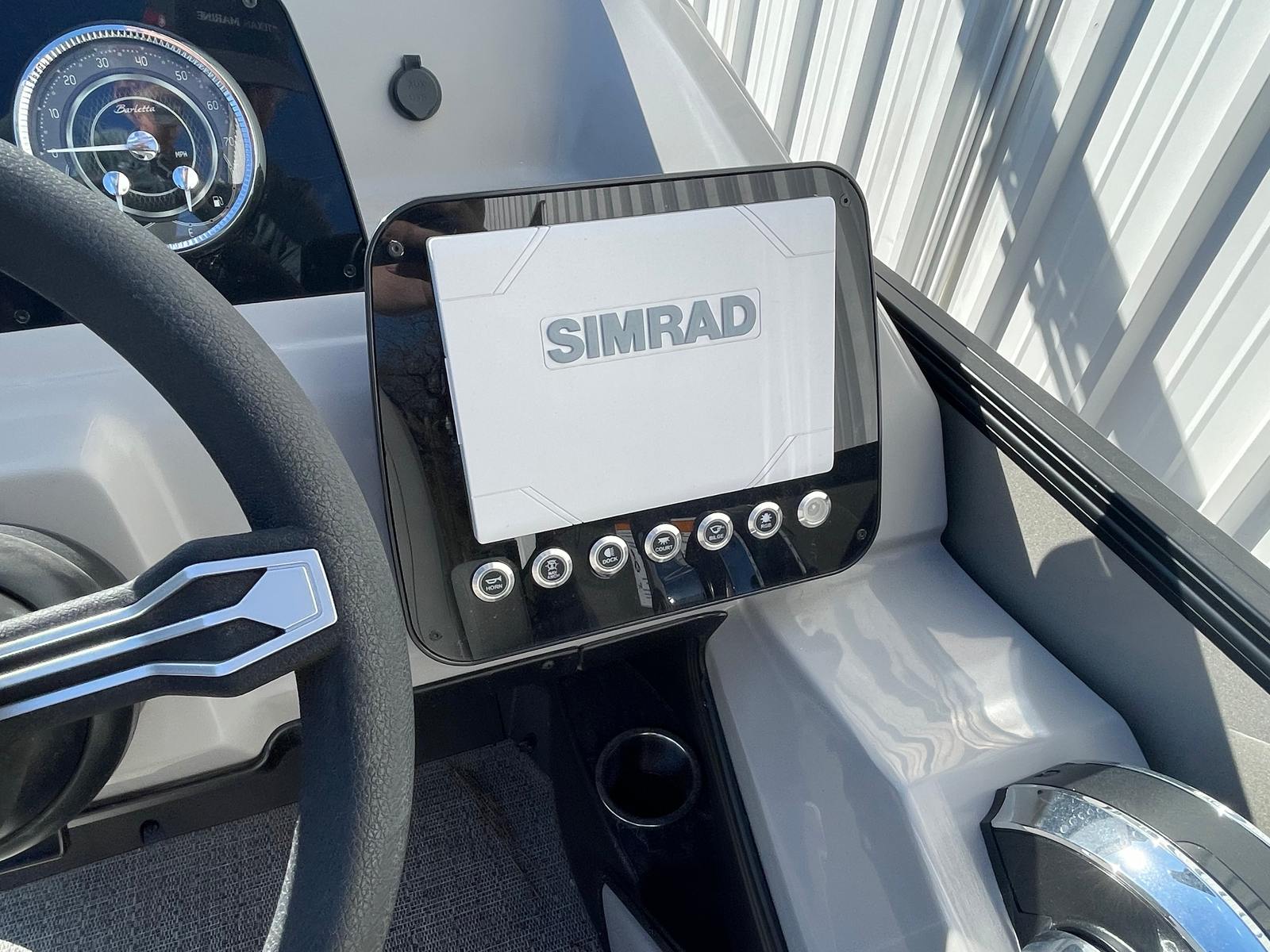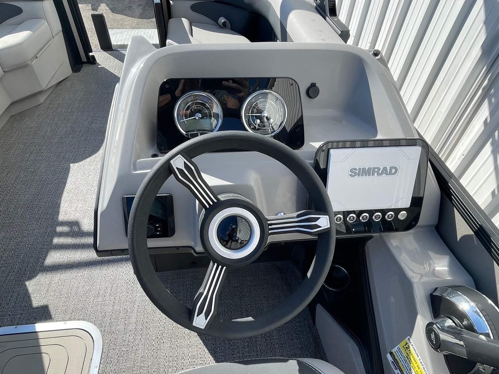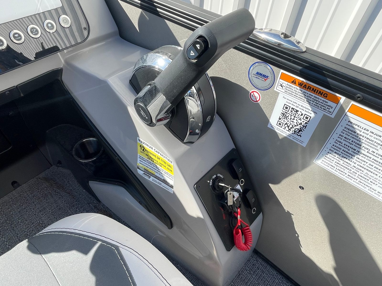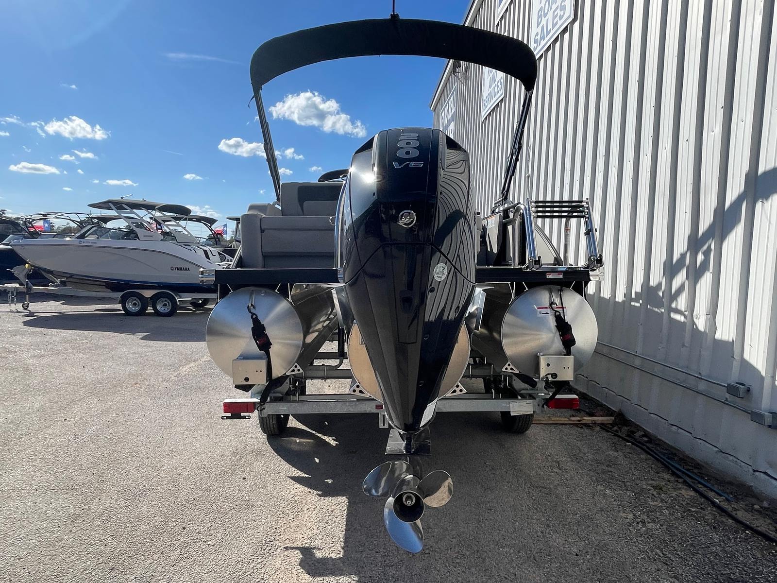 Step aboard the Barletta Aria A22UC-Platinum and experience a world of luxury and convenience. The Railskin Color Aria in Champagne, complemented by the Black Diamond accent, creates a sophisticated and eye-catching exterior. The Blackout Package Aria adds a touch of modern elegance, ensuring your pontoon stands out from the crowd. Inside, the Tempest Gray furniture provides plush seating and a contemporary look, while the Amore Gray flooring offers both style and durability.The Double Bimini canvas delivers ample shade, allowing you and your guests to relax comfortably even on the sunniest days. The Triple Toon Package Aria enhances stability and buoyancy, making this pontoon ideal for larger groups and more active water activities. Every detail, from the rigged engine with stainless steel prop to the thoughtful layout, is designed to maximize your enjoyment and convenience on the water.
