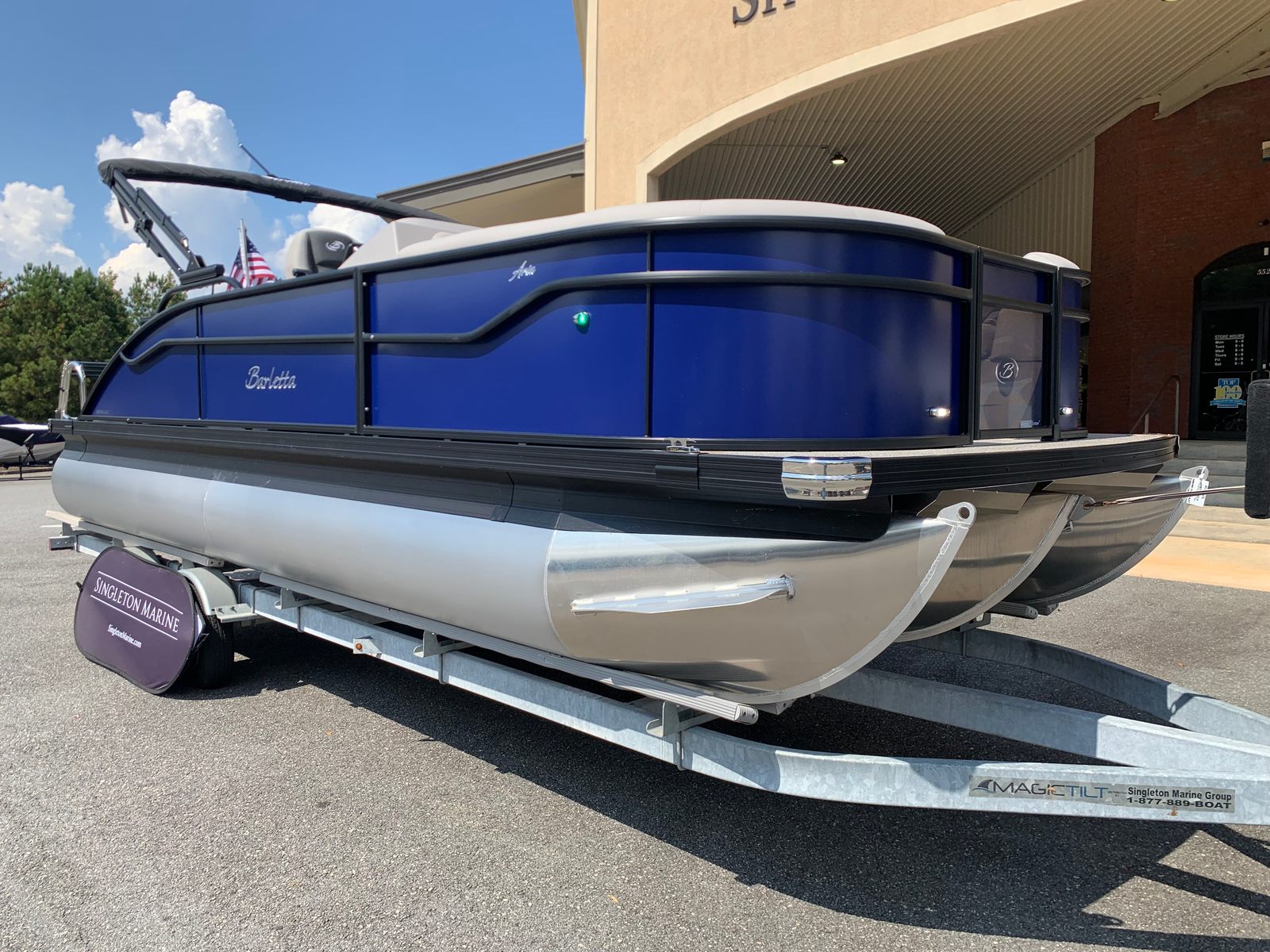 The 2026 Barletta Aria A22UC-Platinum measures just over 21 feet in length, making it an ideal size for both intimate gatherings and lively social outings. As a brand-new pontoon, it offers the latest advancements in marine technology and design, ensuring a smooth and enjoyable experience every time you set out on the water. The Aria A22UC-Platinum’s sleek profile, highlighted by the Blackout Package Aria and Bohemian Blue railskin, exudes modern sophistication, while its spacious deck layout provides ample room for relaxation and entertainment.