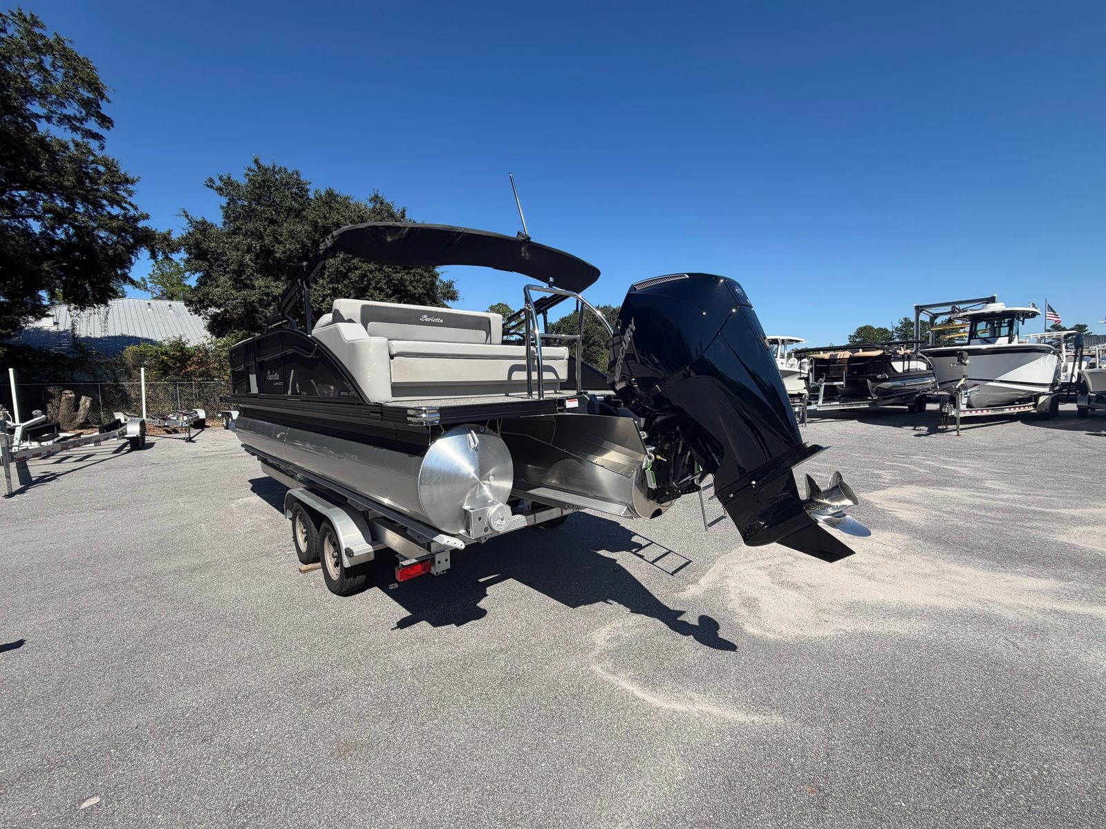 Powering the Aria A22UC-Platinum is a single Mercury 200L FourStroke engine, delivering an impressive 200 horsepower. This engine is renowned for its reliability, smooth operation, and fuel efficiency, ensuring you can enjoy extended adventures without worry. The Mercury 200L FourStroke provides responsive acceleration and effortless cruising, whether you’re gliding across calm waters or navigating through gentle waves. With the Triple Toon Package Aria, the pontoon’s enhanced hull design offers improved stability and handling, making every ride comfortable and secure. The rigging includes a stainless steel prop and Mercury mechanical pre-rig with power assist, giving you precise control and confidence at the helm.