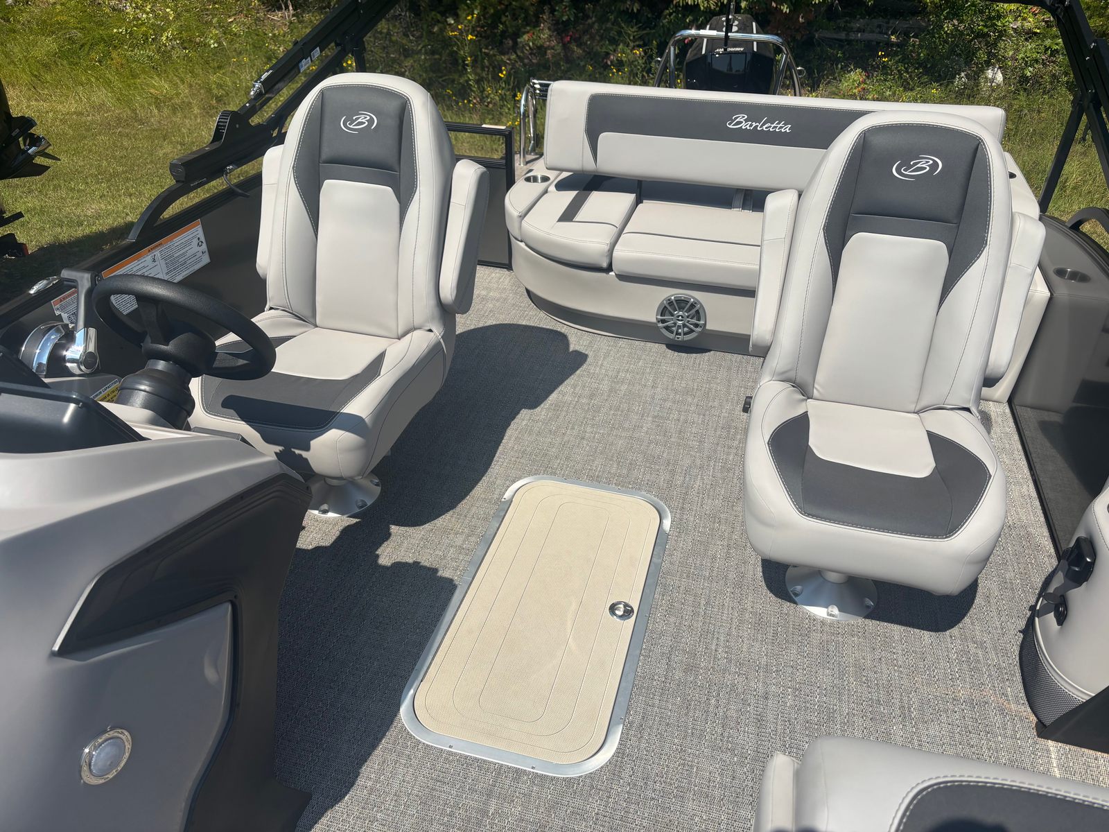 The 2026 Barletta Aria A22UC-Platinum is a brand-new pontoon boat that measures just over 21 feet in length, offering ample space for relaxation, entertainment, and fun. As a new model from Barletta, this pontoon boasts the latest innovations in design and engineering, ensuring a smooth and enjoyable ride every time you set out on the water. With its sleek Gray Moonstone Railskin color and Tempest Gray furniture, the Aria A22UC-Platinum exudes modern elegance and sophistication, making it a true head-turner at any marina or lake.