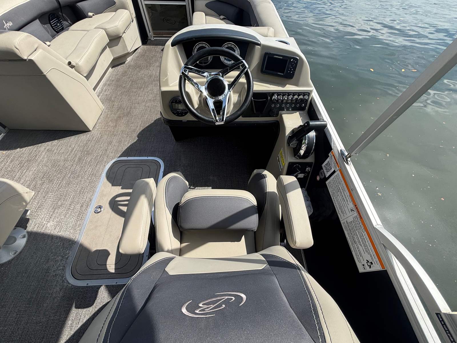 Owning the Barletta Aria A22UC means embracing a lifestyle of fun, relaxation, and connection. The spacious layout and comfortable seating make it easy to entertain guests, host family picnics, or simply unwind with a good book as you drift along the water. The pontoon’s design encourages socializing, with open spaces perfect for conversation, sunbathing, or enjoying a meal al fresco. The plush Marino Gray furniture ensures that every passenger rides in comfort, while the durable flooring stands up to the rigors of active days on the water.The Triple Toon Package Aria enhances stability, making the boat feel secure and steady, even when fully loaded with friends and family. This stability is especially appreciated during group outings, ensuring everyone can move about safely and confidently. The efficient Mercury engine not only delivers reliable power but also keeps fuel costs manageable, so you can spend more time enjoying the water and less time worrying about refueling.