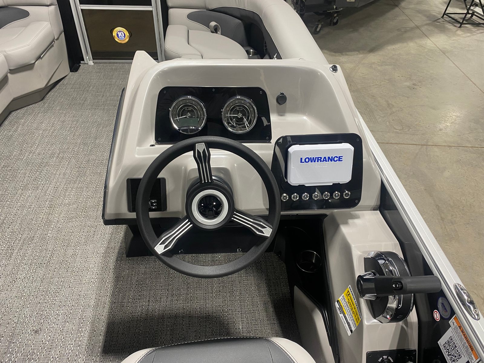 The Barletta Aria A22UC is packed with features that elevate your boating experience. The Railskin Color Aria in Black Diamond not only adds visual appeal but also provides durability and resistance to the elements. The Tempest Gray furniture offers plush seating and ergonomic design, ensuring comfort for all passengers during long days on the water. The Amore Gray flooring is both stylish and practical, providing a non-slip surface that’s easy to clean and maintain.The Triple Toon Package Aria is a standout feature, offering enhanced buoyancy and stability for a smoother ride. The Mercury mechanical pre-rigging and drop ship engine rigging streamline the setup process, allowing for quick and hassle-free installation. The exterior is adorned with a stainless steel flag pole and an American flag, adding a touch of patriotism and elegance to your pontoon. At the helm, the Eagle 5 GPS provides advanced navigation capabilities, helping you chart your course with confidence and precision.