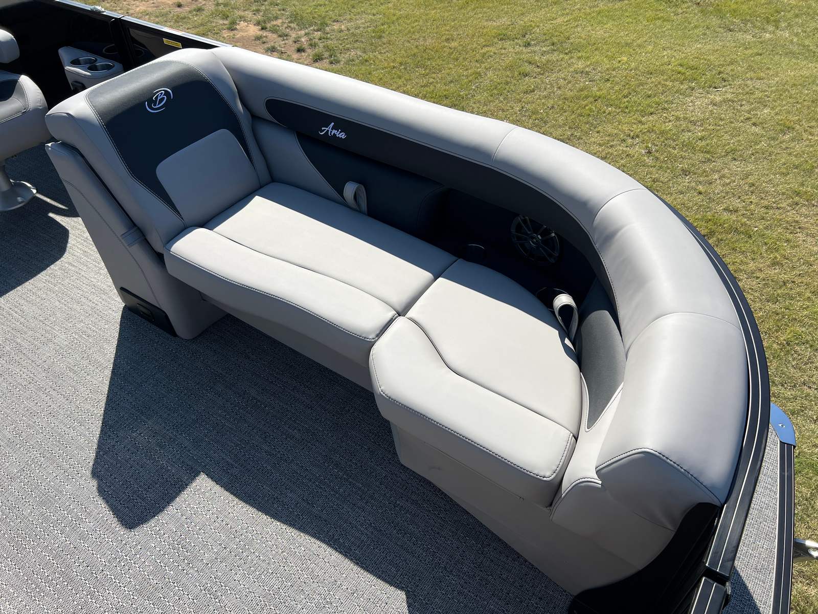 The Barletta Aria A22UC is packed with special features that elevate your boating experience. The Railskin Color Aria in Black Diamond and the Blackout Package Aria give the boat a bold, sophisticated look, while the Tempest Gray furniture and Amore Gray flooring create a modern, comfortable interior. The Triple Toon Package Aria adds an extra layer of stability and performance, making this pontoon ideal for larger groups and more active outings. The in-floor midship storage provides convenient space for stowing gear, water toys, and personal items, keeping the deck clutter-free and organized. A stainless steel flag pole with an American flag adds a patriotic touch, perfect for holiday weekends and special occasions.
