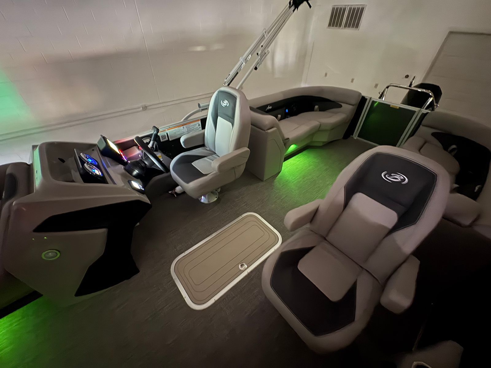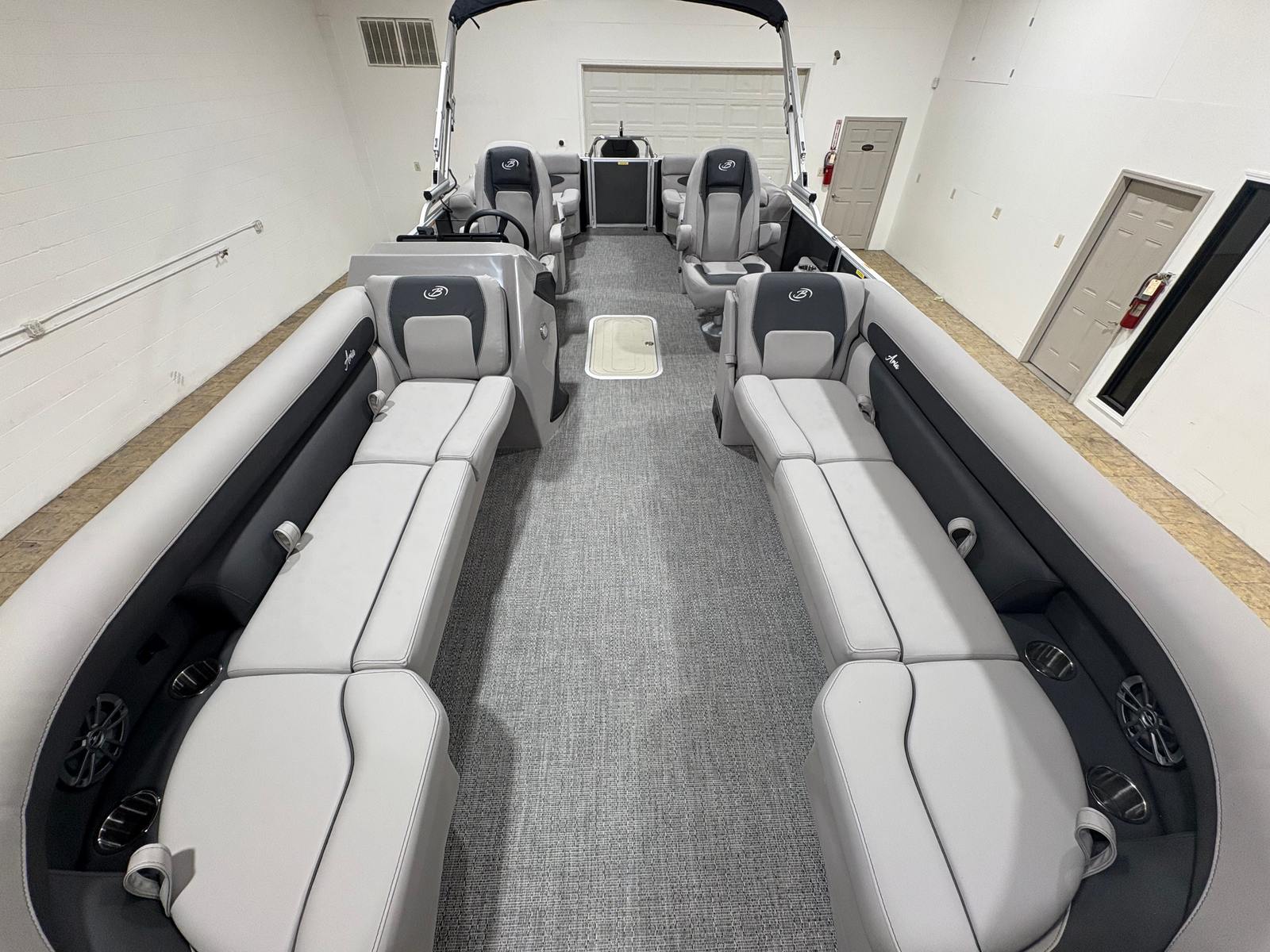 Owning the Barletta Aria A24QC means embracing a lifestyle of fun, relaxation, and connection. The spacious deck layout encourages socializing, whether you are hosting a lively gathering or enjoying a quiet sunset cruise. The plush Tempest Gray furniture provides ample seating for family and friends, ensuring everyone can relax in comfort. The customizable RGB lighting transforms the ambiance to suit any mood, from festive parties to tranquil evenings under the stars.The Triple Toon Package not only enhances performance but also contributes to a more stable and secure ride, making it ideal for families with children or anyone who values peace of mind on the water. The in-floor storage keeps essentials within easy reach, so you can focus on making memories instead of managing clutter. Every outing becomes an opportunity for adventure, laughter, and lasting bonds.