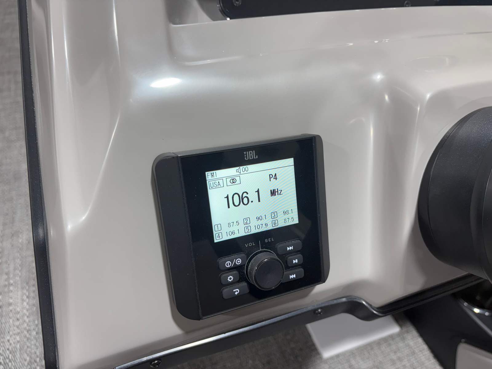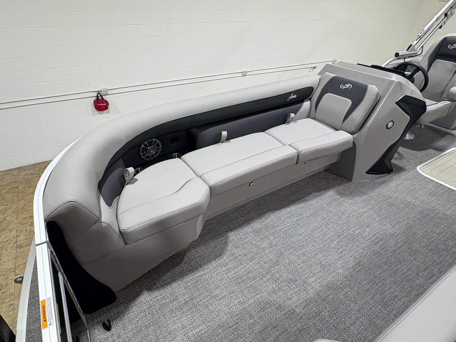 The Barletta Aria A24QC is designed with practicality in mind, making ownership as enjoyable as the time spent on the water. The efficient Mercury 250L FourStroke engine offers a balance of power and fuel economy, reducing the frequency of refueling stops and maximizing your time on the water. The power assist steering system ensures easy maneuvering, whether you are docking in tight spaces or navigating busy waterways.The in-floor midship storage is perfect for keeping life jackets, fishing gear, or water sports equipment neatly stowed yet easily accessible. The durable flooring and high-quality furniture materials are built to withstand the elements, ensuring your pontoon remains in top condition season after season. The stainless steel flag pole and American flag not only add visual appeal but also make your boat easy to spot from a distance.