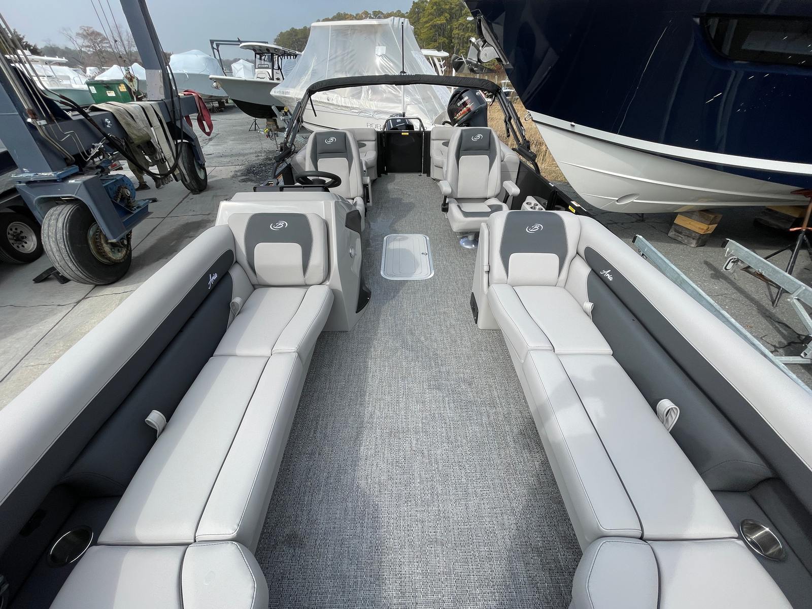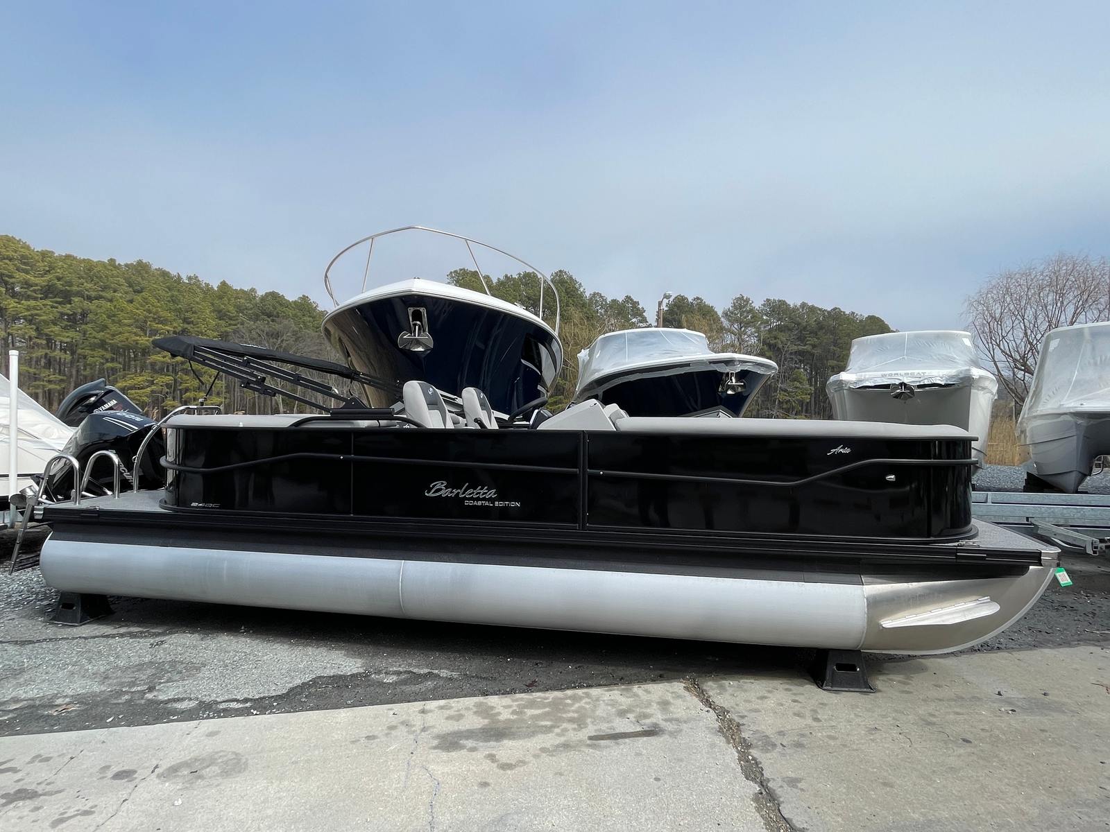 Owning the Barletta Aria A24QC means embracing a lifestyle of fun, relaxation, and adventure. The spacious layout is perfect for hosting gatherings, enjoying meals, or simply lounging in the sun. The comfortable Tempest Gray furniture invites you to unwind, while the ample deck space allows for easy movement and socializing. The stylish Black Diamond railskin and Blackout Package ensure you’ll stand out wherever you go, making every trip a memorable occasion.The powerful Mercury engine provides the speed and reliability needed for water sports, cruising, or exploring new waters. The Triple Toon Package enhances stability, giving you peace of mind whether you’re entertaining guests or enjoying a solo escape. With the Coastal Edition, you can confidently navigate a variety of waterways, from lakes and rivers to coastal areas.