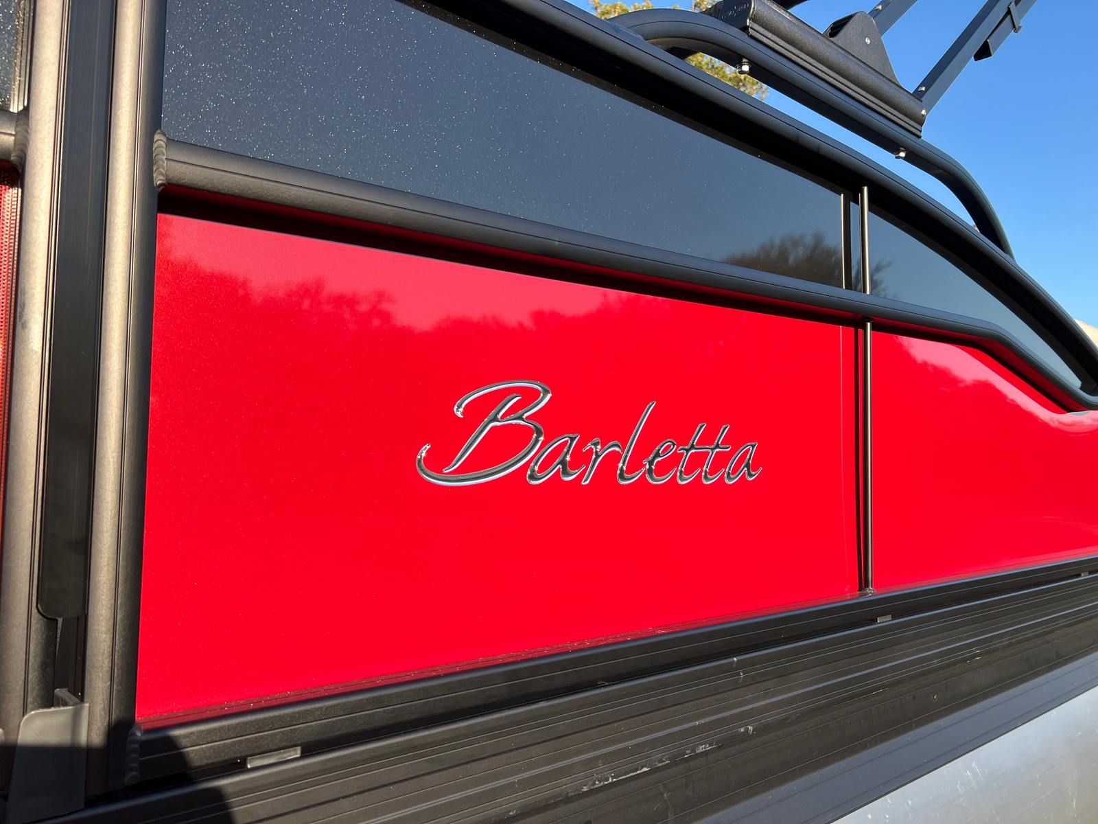 The 2026 Barletta Aria A24UC is a brand-new pontoon boat that measures just over 23 feet in length, offering ample space for family, friends, and all your favorite activities on the water. This model stands out with its eye-catching Railskin Color Aria in Red Garnet, complemented by a sleek Black Diamond accent and the sophisticated Blackout Package Aria. The modern design and attention to detail make this pontoon a true head-turner at any marina or lake.