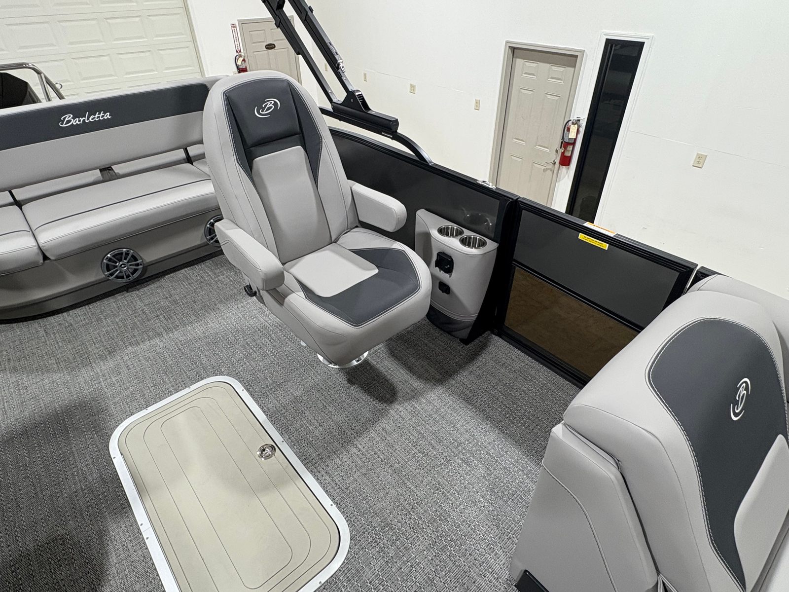 The 2026 Barletta Aria A24UC is loaded with features that enhance both its functionality and aesthetic appeal. The Railskin Color Aria in Gray Moonstone, paired with the Blackout Package Aria, creates a striking exterior that is both modern and timeless. Inside, the Tempest Gray furniture offers plush seating and a luxurious feel, while the Amore Gray flooring is both stylish and easy to maintain. The Triple Toon Package Aria provides added buoyancy and stability, making this pontoon perfect for larger groups or those who want extra peace of mind on the water.For those who value convenience and practicality, the in-floor midship storage (available with the Triple Toon Package) offers ample space to stow away gear, water toys, or picnic supplies, keeping the deck clutter-free and organized. The stainless steel flag pole with an American flag adds a patriotic touch and a sense of pride to your boating experience. The rigging includes a stainless steel prop, ensuring long-lasting performance and minimal maintenance.