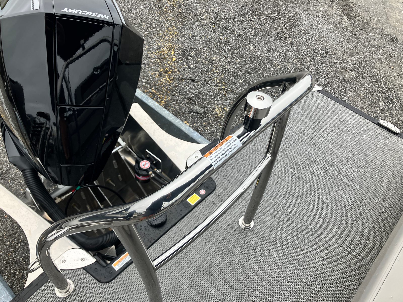 Powering this pontoon is a robust Mercury 200L 4S engine, delivering a thrilling 200 horsepower. This setup ensures smooth acceleration, reliable cruising, and plenty of power for water sports or leisurely rides. The Mercury engine is paired with mechanical pre-rigging and power assist steering, making navigation effortless and responsive. The stainless steel prop enhances durability and performance, so you can enjoy worry-free adventures season after season. Whether you’re gliding across calm lakes or tackling choppy waters, the Aria A24UC offers a ride that’s both exhilarating and comfortable.