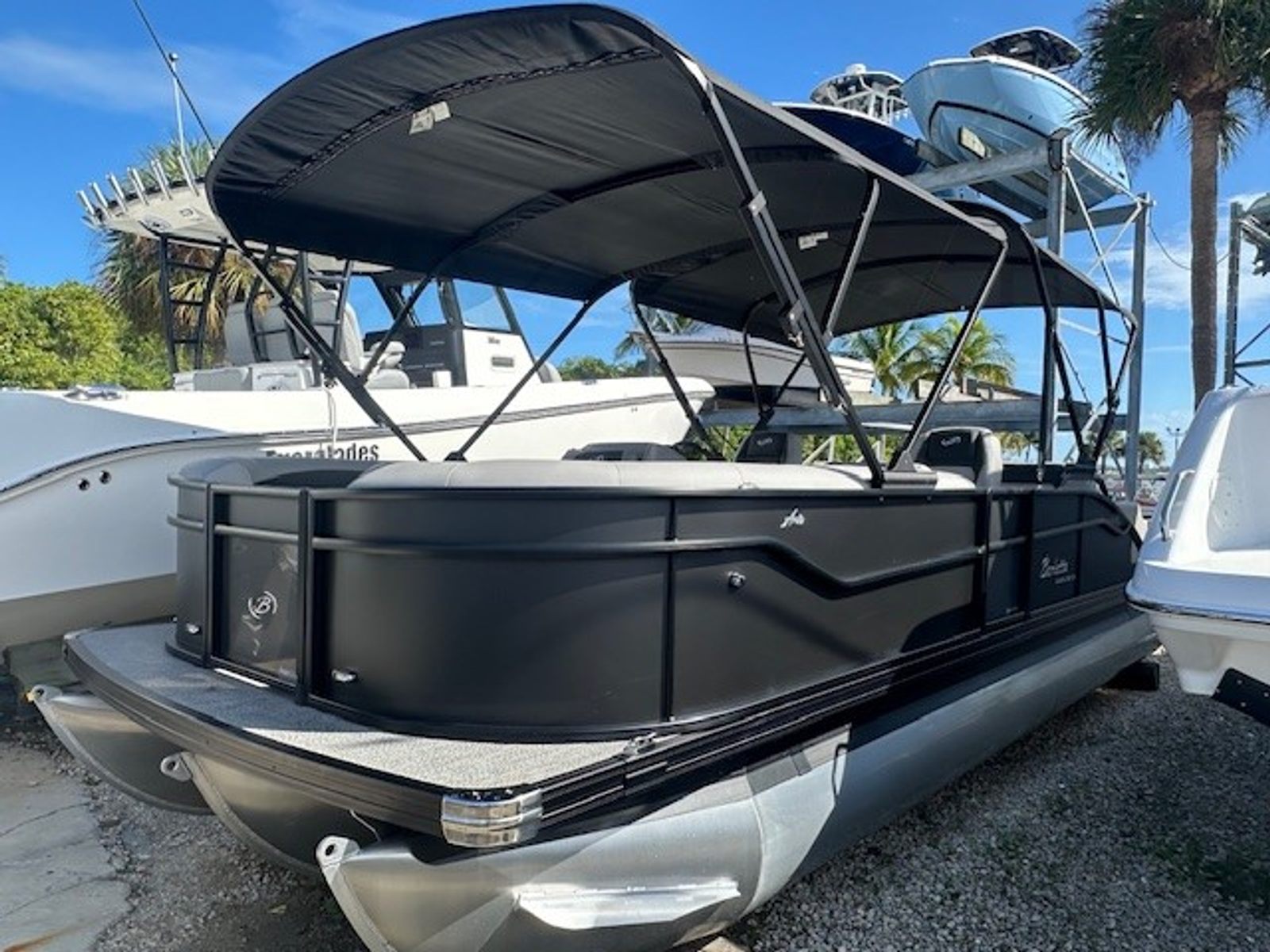The 2026 Barletta Aria A24UC is loaded with features that elevate your boating experience. The Coastal Edition Aria package is designed to withstand the unique challenges of coastal environments, offering added durability and peace of mind. The interior is outfitted with Tempest Gray furniture, providing a sophisticated and comfortable setting for you and your guests. The Matte Black Railskin Color Aria and Blackout Package Aria give the boat a striking, contemporary appearance that is sure to turn heads at the marina.Enjoy vibrant ambiance with the Interior RGB Lighting Package Aria, which allows you to customize the mood onboard with a spectrum of colors. The Amore Gray flooring is both stylish and practical, offering a comfortable and easy-to-clean surface for all your activities. An on-board charger ensures your electronics and accessories stay powered up throughout your adventures, keeping you connected and ready for anything.