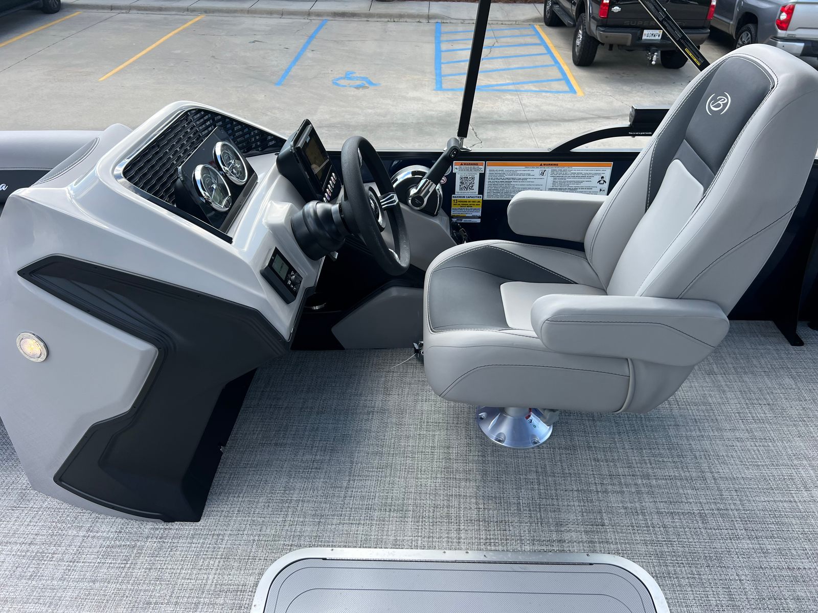 Practicality meets luxury in the Barletta Aria A24UC. The in-floor midship storage keeps your deck clutter-free, allowing you to bring along everything you need for a day on the water without sacrificing space or comfort. The clipped playpen cover with poles offers peace of mind, protecting your investment from sun, rain, and debris when your pontoon is docked or stored.Docking and maneuvering are made simple with the power assist steering and responsive Mercury engine, so you can easily navigate tight spaces or busy marinas. The durable stainless steel prop ensures reliable performance and minimal maintenance, giving you more time to enjoy your boat and less time worrying about upkeep. Whether you are a seasoned boater or new to the world of pontoons, the Barletta Aria A24UC is designed to make ownership easy and enjoyable.