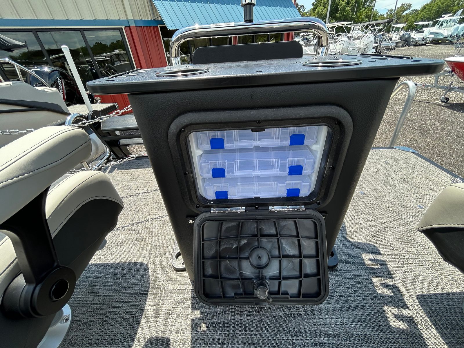 The Barletta Cabrio C22CC is as practical as it is luxurious. The midship storage compartment provides ample space for life jackets, fishing gear, water sports equipment, and other essentials, keeping your deck organized and clutter-free. The boat’s efficient Mercury 150L 4S engine offers excellent fuel economy, allowing you to spend more time on the water and less time at the pump. Docking and maneuvering are made easier by the responsive handling and thoughtfully designed controls, ensuring stress-free arrivals and departures at any marina or dock.The durable Amore Gray flooring stands up to heavy foot traffic, wet swimsuits, and the occasional spilled drink, while the Matte Black railskin resists the elements and maintains its striking appearance season after season. The Stainless Steel Flag Pole with American Flag adds a touch of pride and personality, making your boat stand out wherever you go.