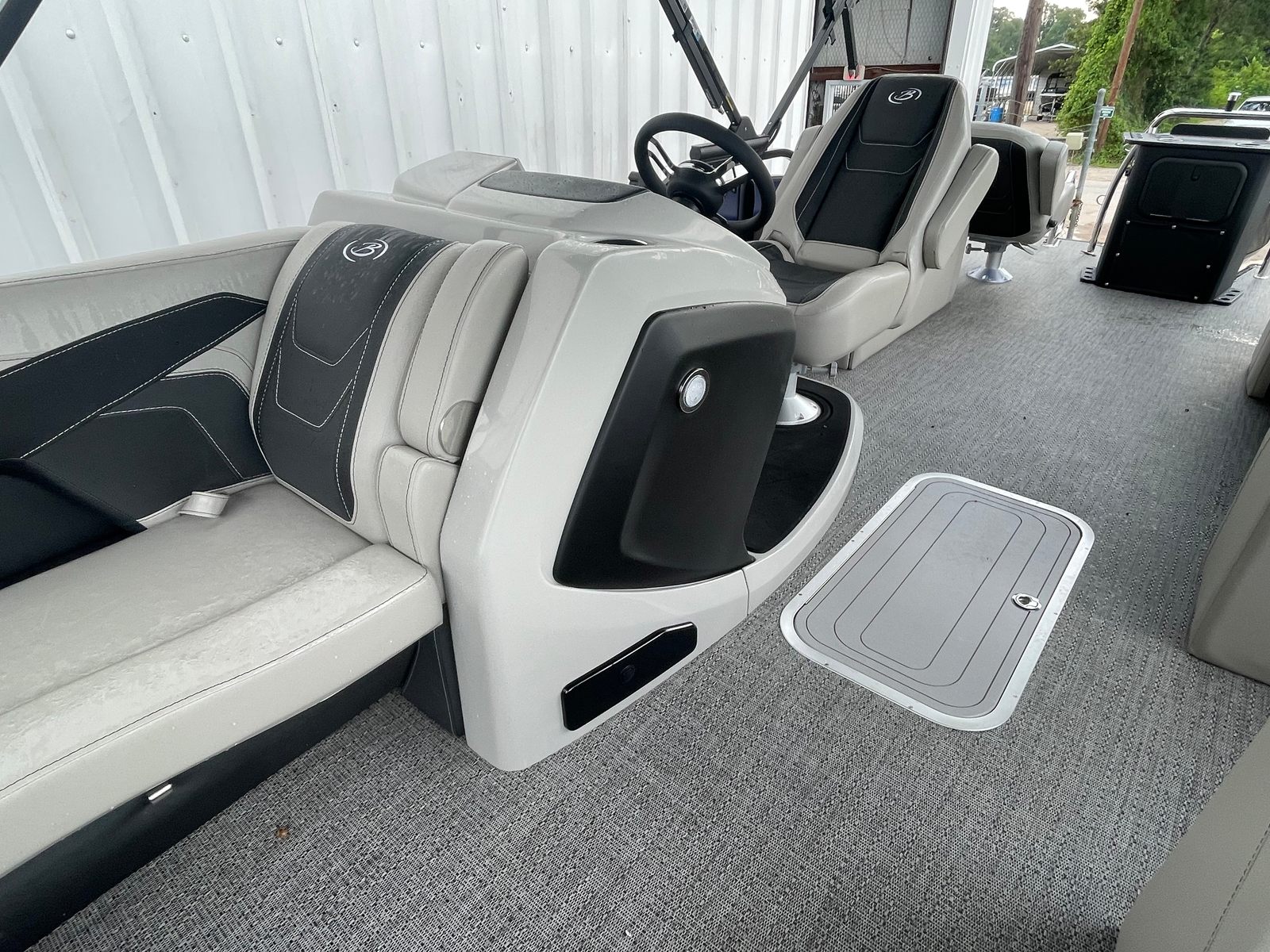 Powering the Barletta Cabrio C22CC is a robust Mercury (M) 200L FourStroke engine, delivering an impressive 200 horsepower. This setup ensures smooth acceleration, responsive handling, and the capability to cruise effortlessly across lakes and rivers. The Mercury pre-rig with mechanical controls and power assist (200HP) guarantees precise maneuverability, while the stainless steel prop enhances durability and performance. Whether you are towing water toys, exploring new coves, or simply enjoying a leisurely cruise, this pontoon boat’s engine package provides the power and reliability you need for every adventure.