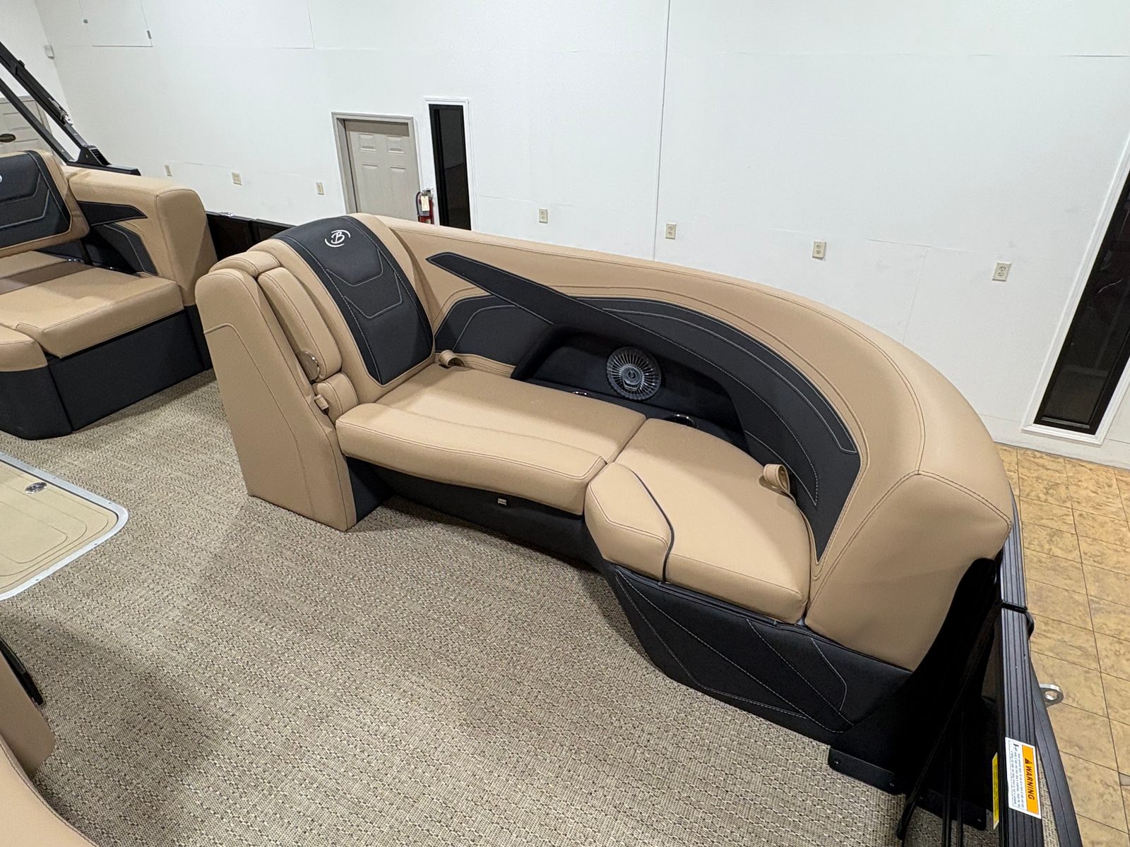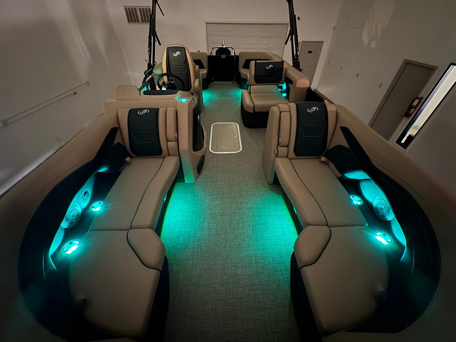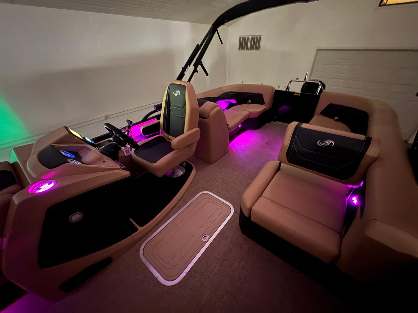 The Barletta Cabrio C22Q is loaded with features that elevate your boating experience. The Black Diamond Railskin color and Blackout Package Cabrio create a bold, contemporary exterior that is both stylish and durable. Step aboard to discover the Carmella Tan with Onyx furniture, offering plush comfort and a sophisticated look. The Amore Tan flooring is not only visually appealing but also practical, providing a soft, non-slip surface underfoot.One of the standout features of this pontoon is the Triple Toon Package with midship storage, exclusive to the Cabrio line. This configuration enhances stability and buoyancy, while the midship storage compartment offers convenient space for stowing gear, water toys, or picnic essentials. The stainless steel flag pole with an American flag adds a patriotic touch, perfect for holiday weekends or special occasions on the water.For those who love to set the mood, the interior RGB lighting package allows you to customize the ambiance with vibrant colors, making evening cruises truly magical. Every detail, from the stainless steel accents to the thoughtfully designed seating, reflects Barletta’s commitment to quality and comfort.