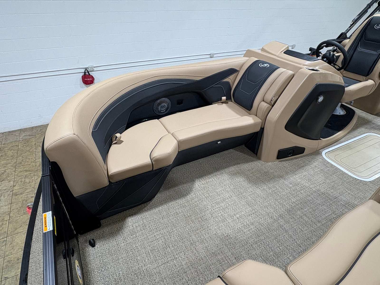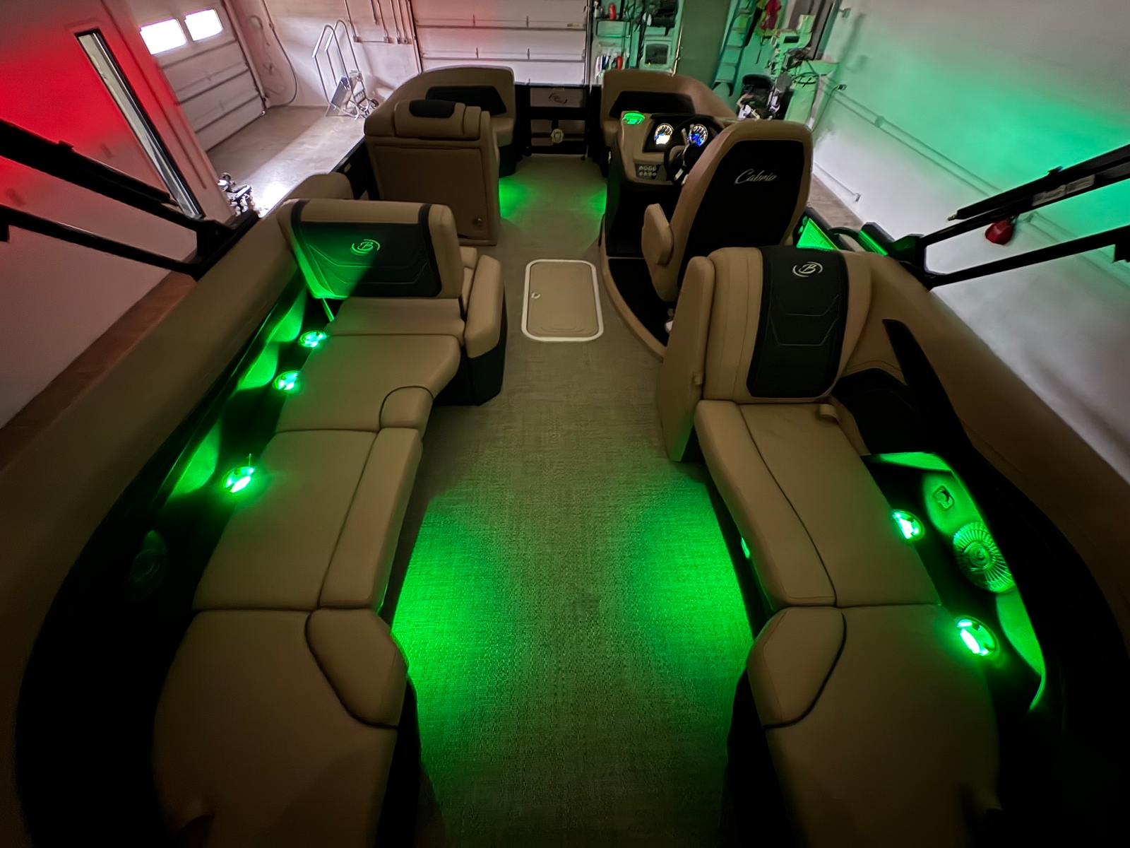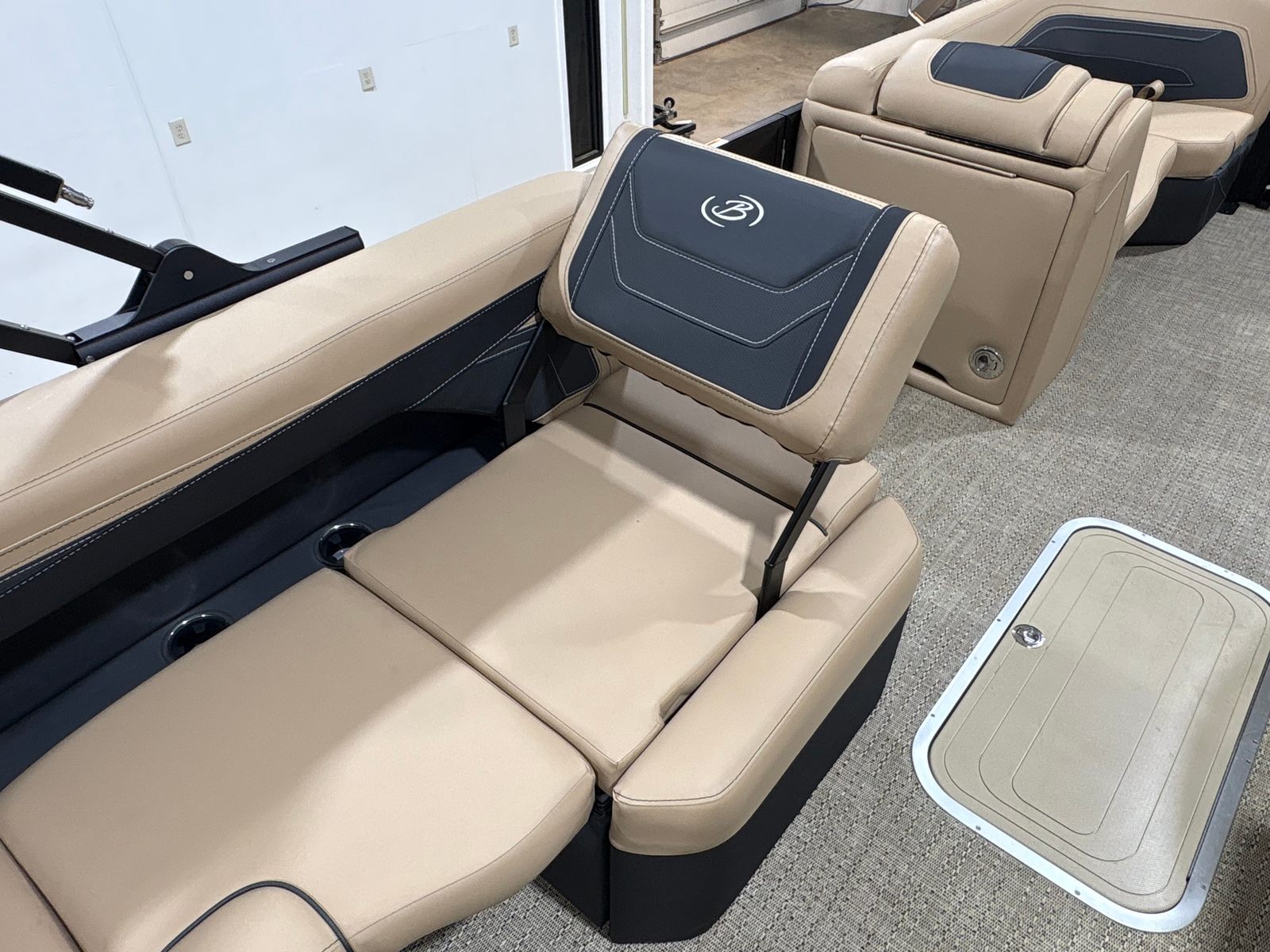 The Barletta Cabrio C22Q is loaded with features that elevate your boating experience. The Black Diamond Railskin color and Blackout Package Cabrio create a bold, contemporary exterior that is both stylish and durable. Step aboard to discover the Carmella Tan with Onyx furniture, offering plush comfort and a sophisticated look. The Amore Tan flooring is not only visually appealing but also practical, providing a soft, non-slip surface underfoot.One of the standout features of this pontoon is the Triple Toon Package with midship storage, exclusive to the Cabrio line. This configuration enhances stability and buoyancy, while the midship storage compartment offers convenient space for stowing gear, water toys, or picnic essentials. The stainless steel flag pole with an American flag adds a patriotic touch, perfect for holiday weekends or special occasions on the water.For those who love to set the mood, the interior RGB lighting package allows you to customize the ambiance with vibrant colors, making evening cruises truly magical. Every detail, from the stainless steel accents to the thoughtfully designed seating, reflects Barletta’s commitment to quality and comfort.