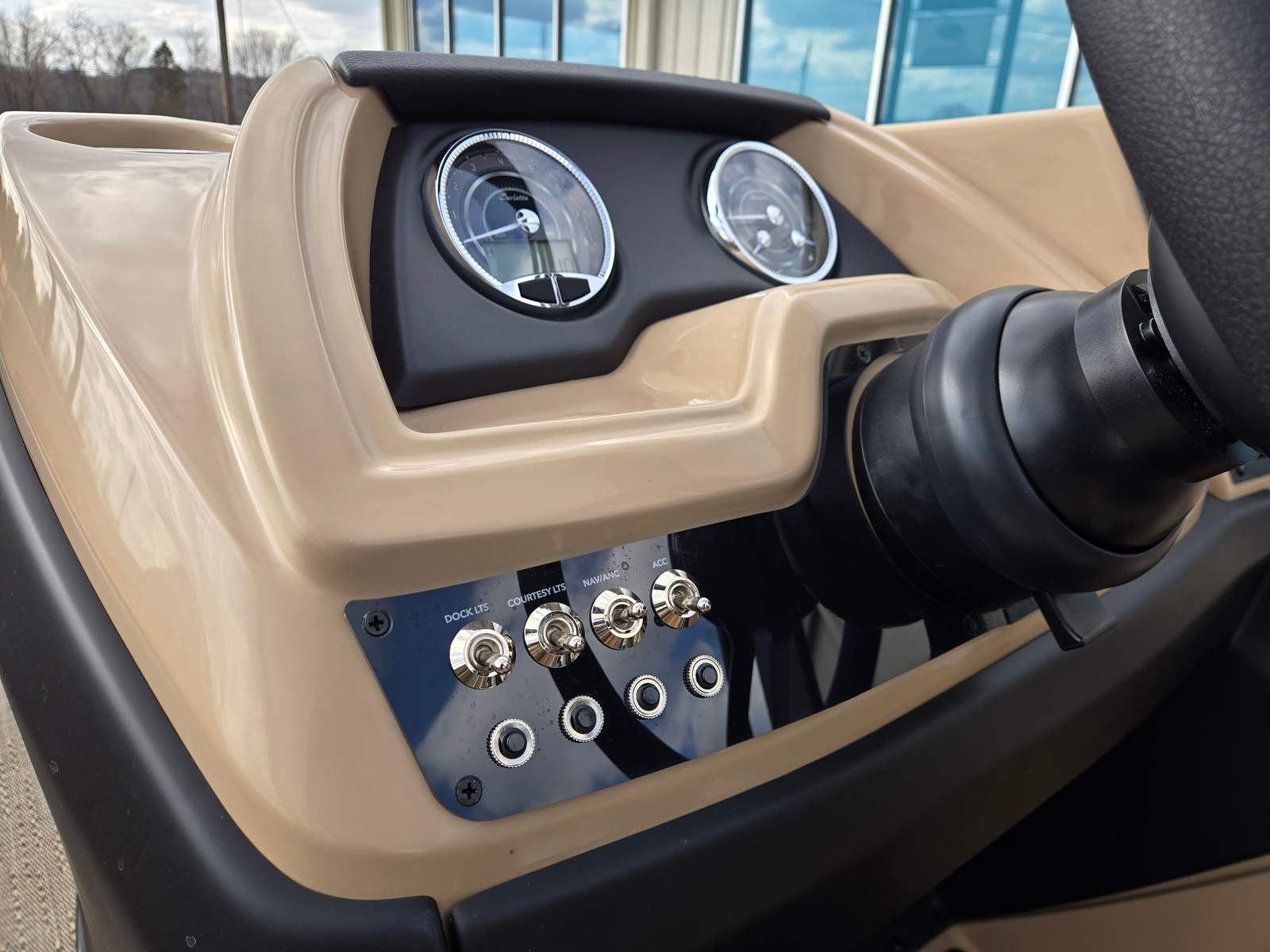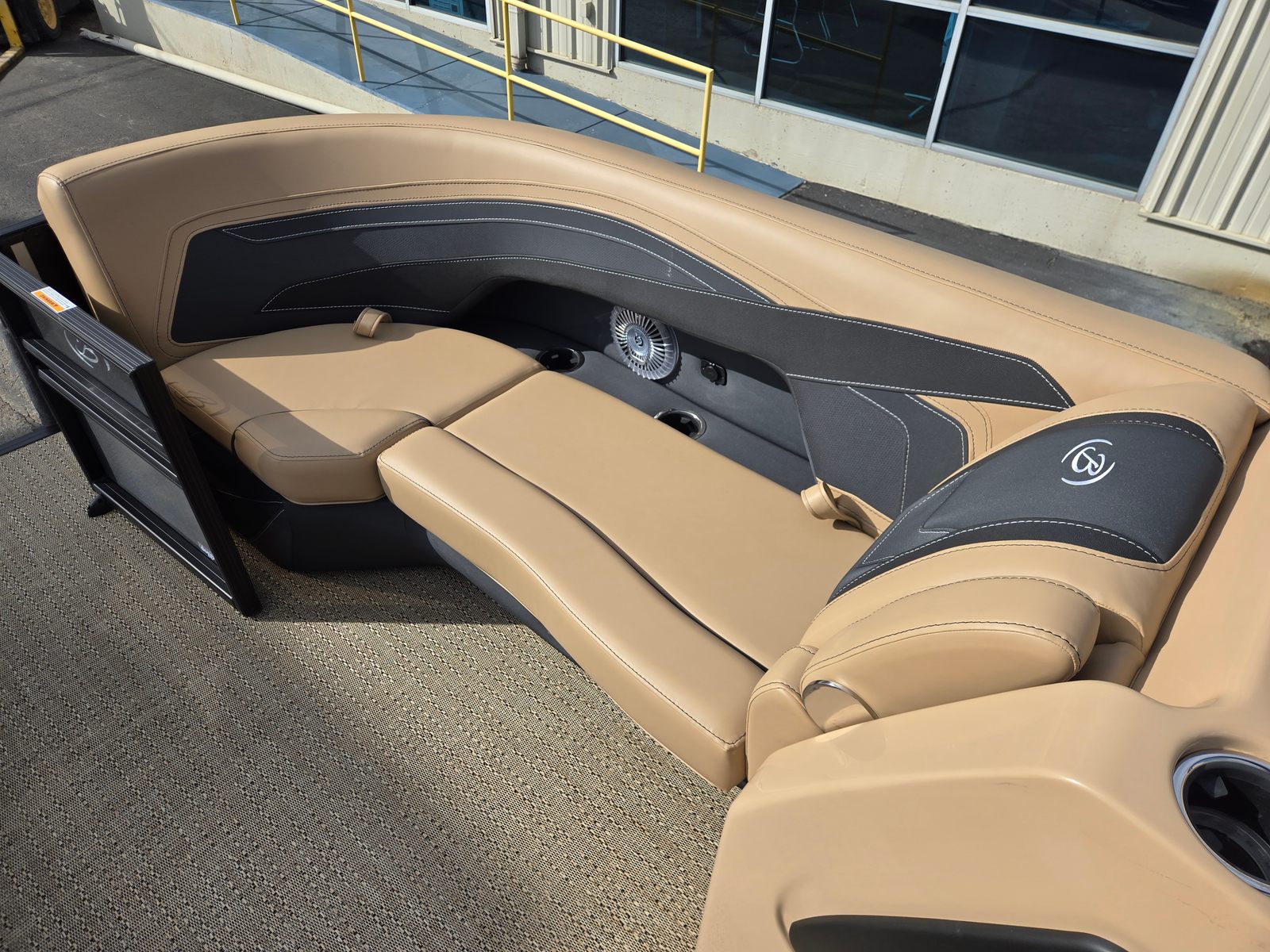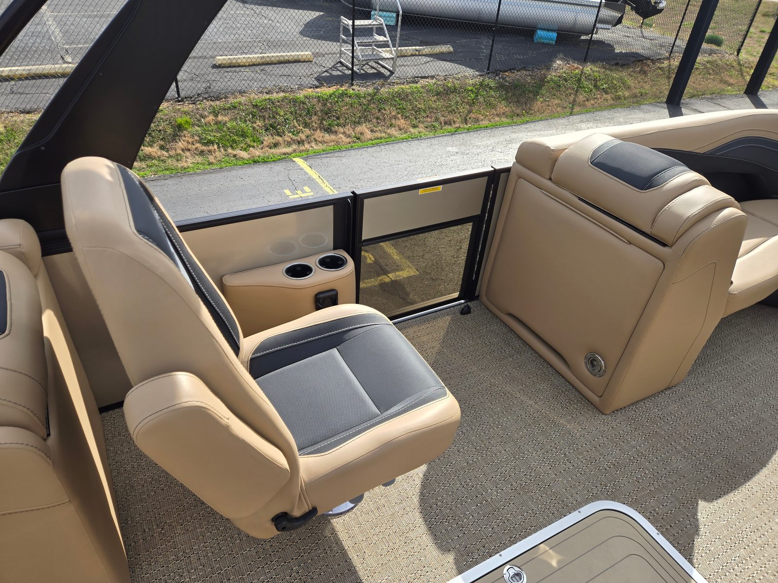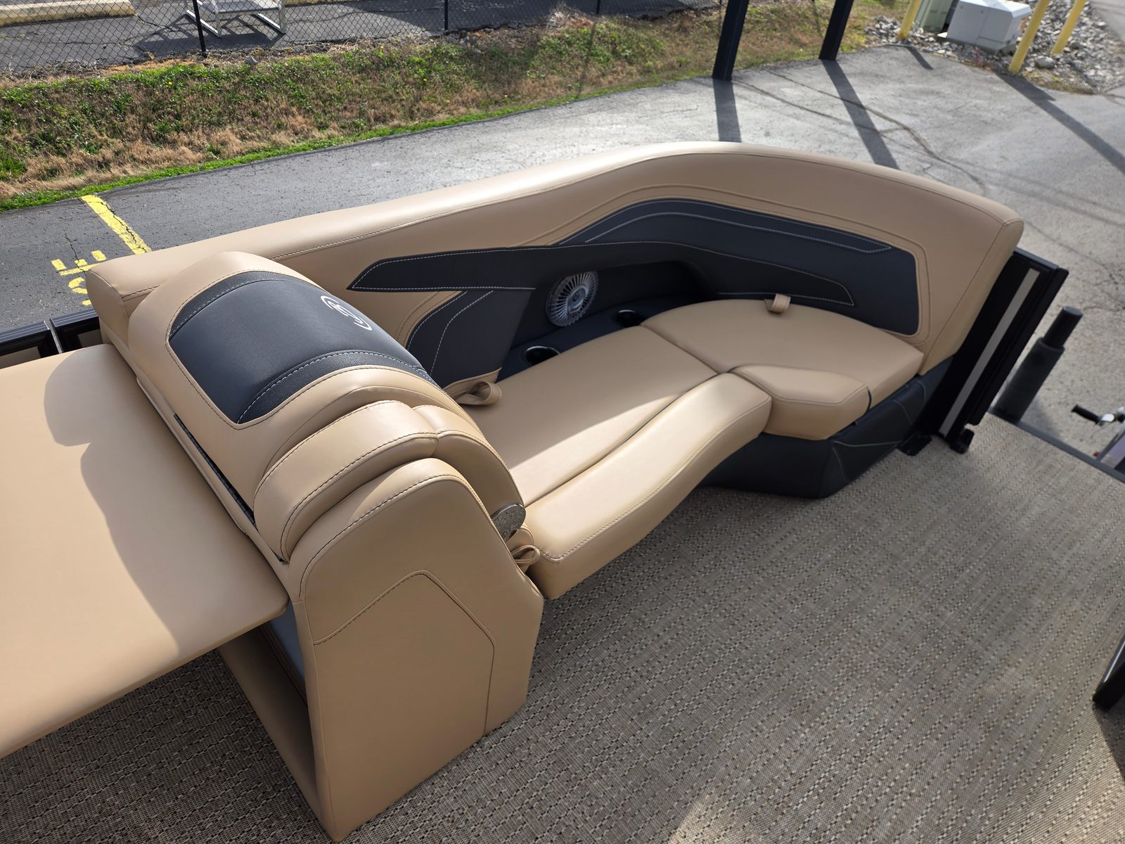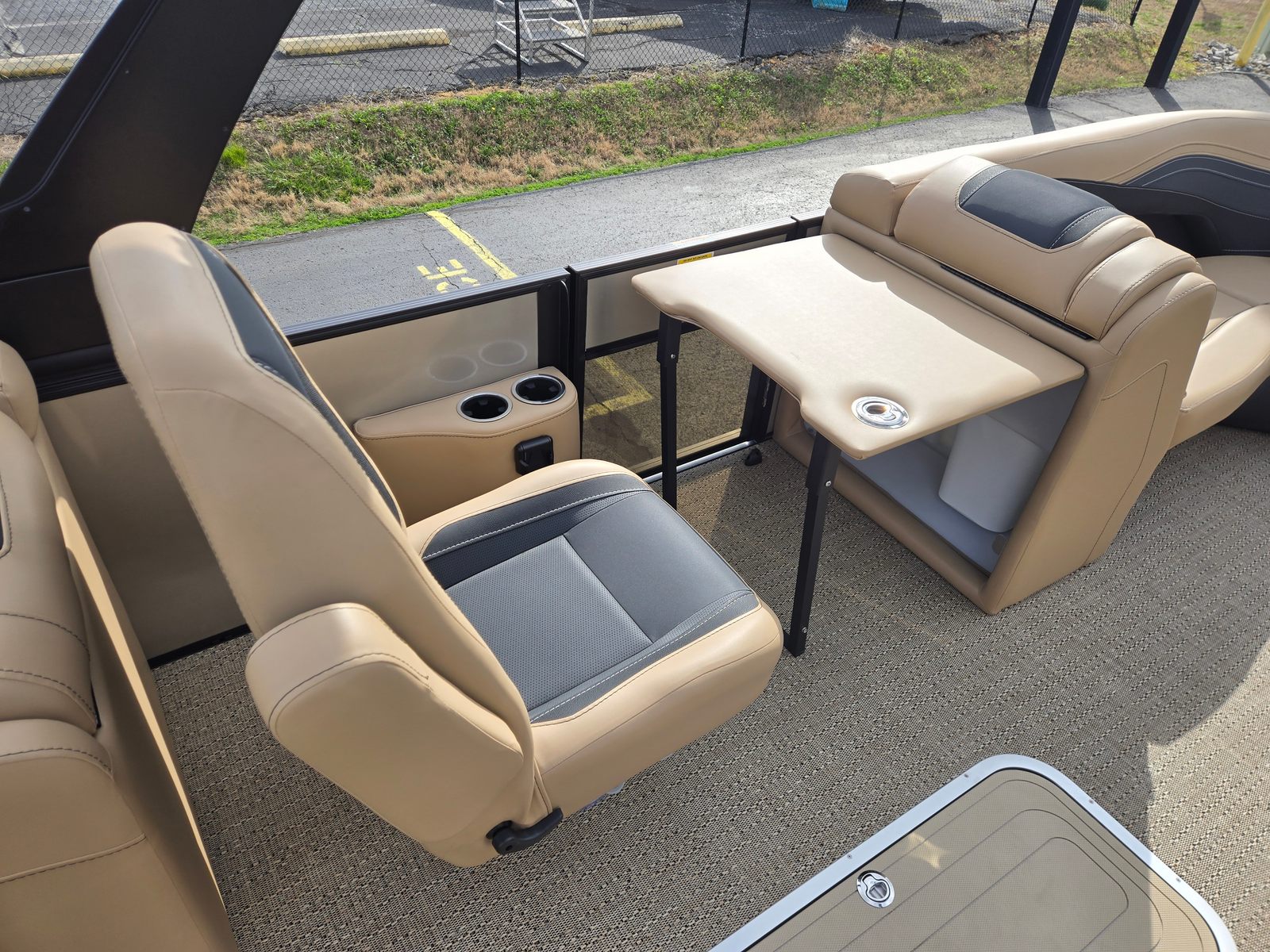 Step aboard and experience the luxury of Carmella Tan furniture accented with Onyx, providing a sophisticated and inviting atmosphere for you and your guests. The Amore Tan flooring offers both comfort and style, creating a warm and welcoming environment underfoot. The Railskin Color in Black Diamond, complemented by a Champagne accent, gives the boat a sleek and modern appearance, further enhanced by the Blackout Package Cabrio for a bold, contemporary look.The Triple Toon Package with midship storage is a standout feature, offering additional stability and ample space for storing gear, water toys, or picnic essentials. The Sport Bimini, installed in place of the standard bimini, provides superior shade and protection from the sun, allowing you to enjoy long days on the water in comfort. Every detail of the Barletta Cabrio C22QC is designed to maximize your enjoyment and convenience, making it a truly exceptional pontoon boat for sale.