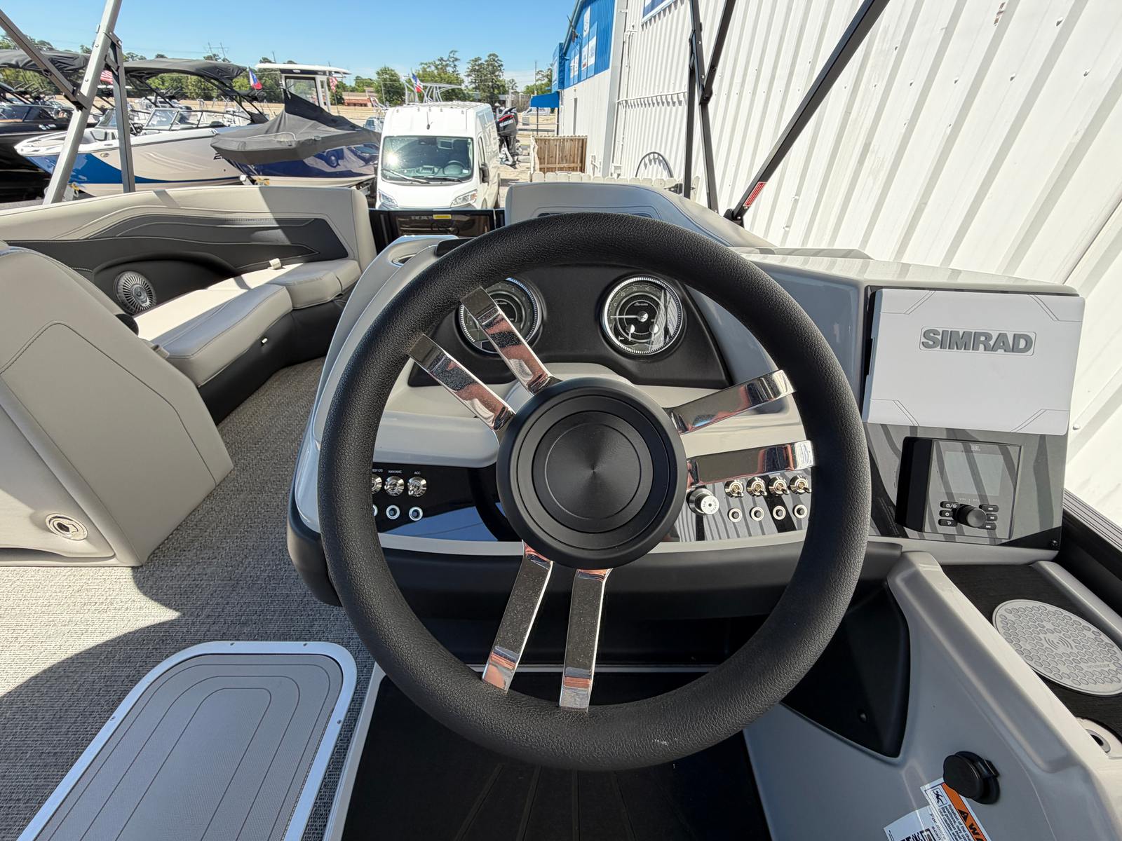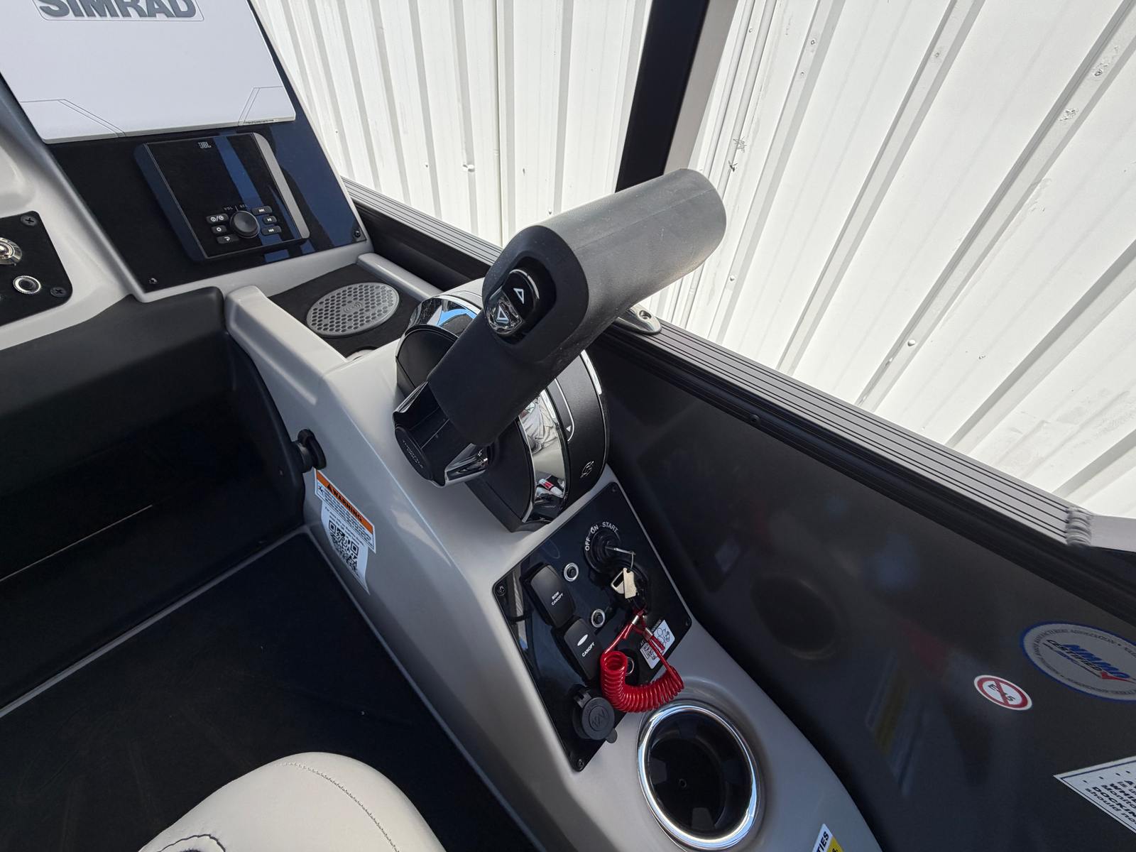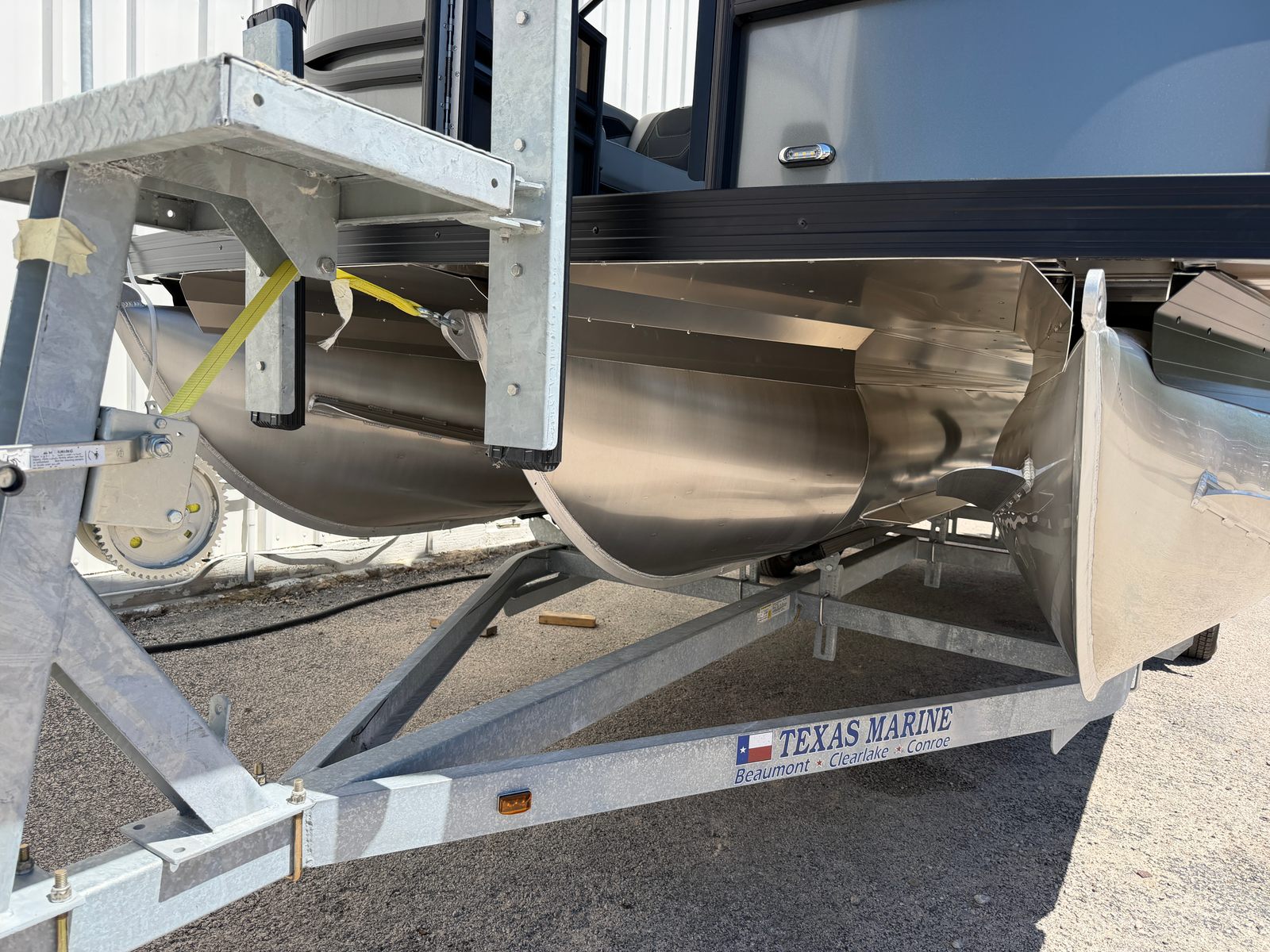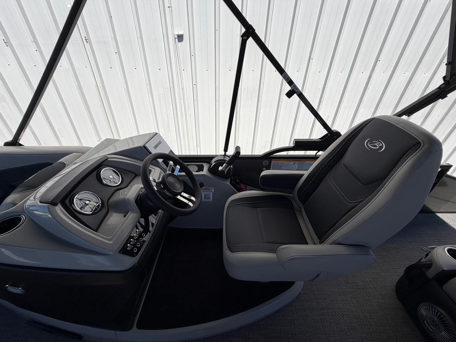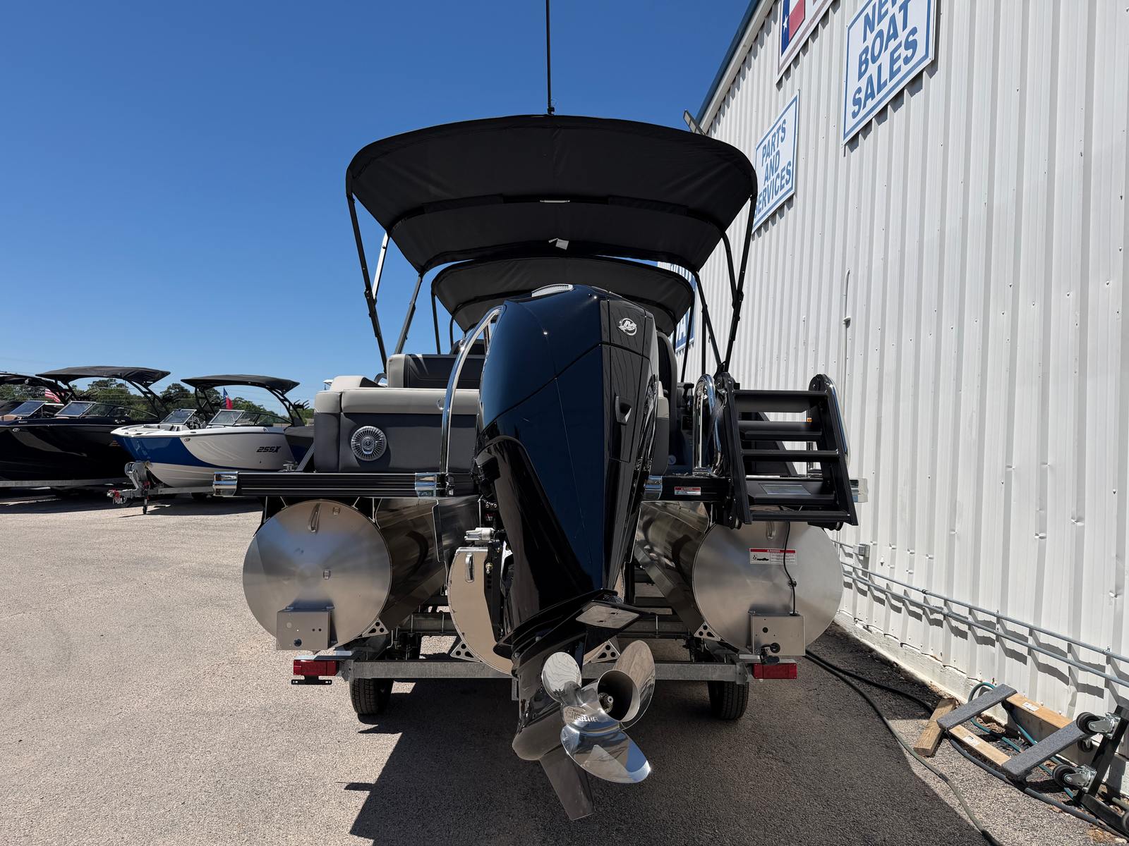 The Barletta Cabrio C22UC is loaded with special features that set it apart from other pontoon boats for sale. The Gray Moonstone Railskin color and Cabrio Blackout Package create a bold and stylish exterior, while the Marquesan Gray with Onyx furniture provides plush seating and a luxurious feel. The Amore Gray flooring is both elegant and practical, offering a comfortable surface that is easy to clean and maintain.The Cabrio Triple Toon Package with midship storage adds valuable space for your gear, making it easy to keep the deck organized and clutter-free. The Mercury (M) 200L FourStroke engine is paired with a pre-rig mechanical system and a stainless steel prop for reliable and efficient operation. Power assist steering ensures smooth and responsive control, enhancing your overall boating experience. The double bimini provides ample shade, allowing you and your guests to relax in comfort, even on the sunniest days.