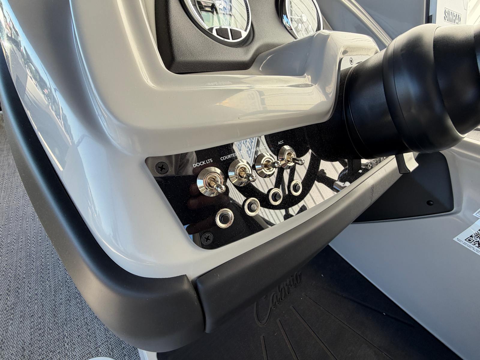 The Barletta Cabrio C22UC is as practical as it is stylish. The midship storage included in the triple toon package offers ample space for life jackets, water toys, and other essentials, keeping your deck tidy and your gear within easy reach. The power assist steering makes docking and maneuvering a breeze, reducing stress and allowing you to focus on having fun.Fuel efficiency is enhanced by the advanced Mercury FourStroke engine, so you can spend more time on the water and less time at the pump. The durable flooring and high-quality materials are designed to withstand the rigors of regular use, ensuring your pontoon boat remains in top condition for years to come. The double bimini provides flexible shade options, making it easy to adapt to changing weather and keep everyone comfortable.