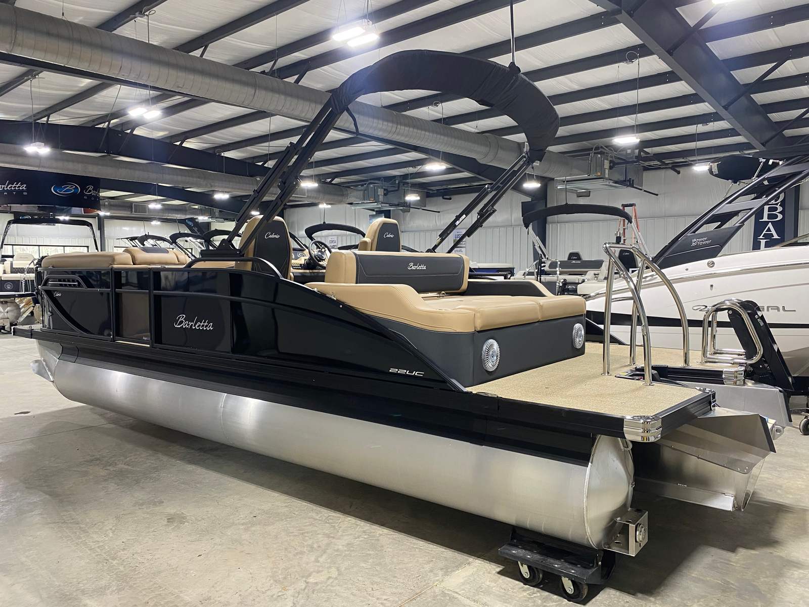 The 2026 Barletta Cabrio C22UC Pontoon stands out as a premier option in the world of recreational boating. Measuring an impressive 23.17 feet in length, this new pontoon offers ample space for family gatherings, social outings, or peaceful escapes on the lake. The Cabrio C22UC’s sleek profile is enhanced by the Black Diamond Railskin color and the Blackout Package Cabrio, giving it a sophisticated and modern look that turns heads wherever you go. The Carmella Tan with Onyx furniture and Amore Tan flooring create a warm, inviting atmosphere, making every moment on board feel like a luxury retreat.