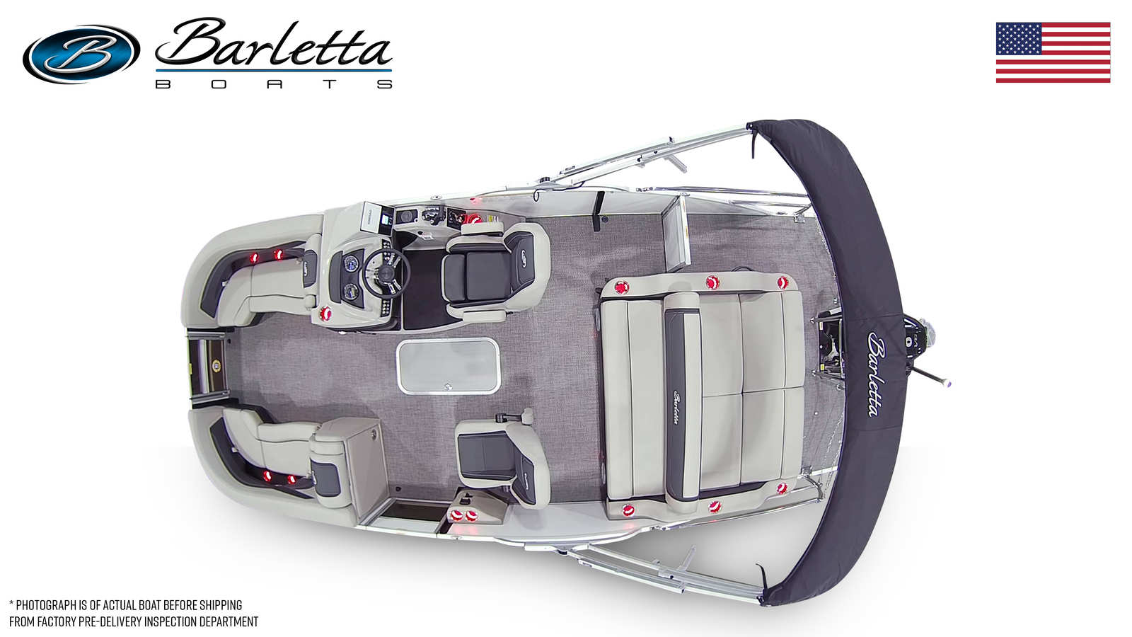 The 2026 Barletta Cabrio C22UC is a new pontoon boat that measures an impressive 23.17 feet in length, offering ample space for relaxation, entertainment, and fun. As a Barletta boat for sale, this model is crafted with meticulous attention to detail, ensuring a premium boating experience from bow to stern. The Cabrio C22UC’s sleek design, combined with its Marquesan Gray/Onyx furniture and Amore Gra flooring, creates a sophisticated and inviting atmosphere that is perfect for both casual outings and special occasions.