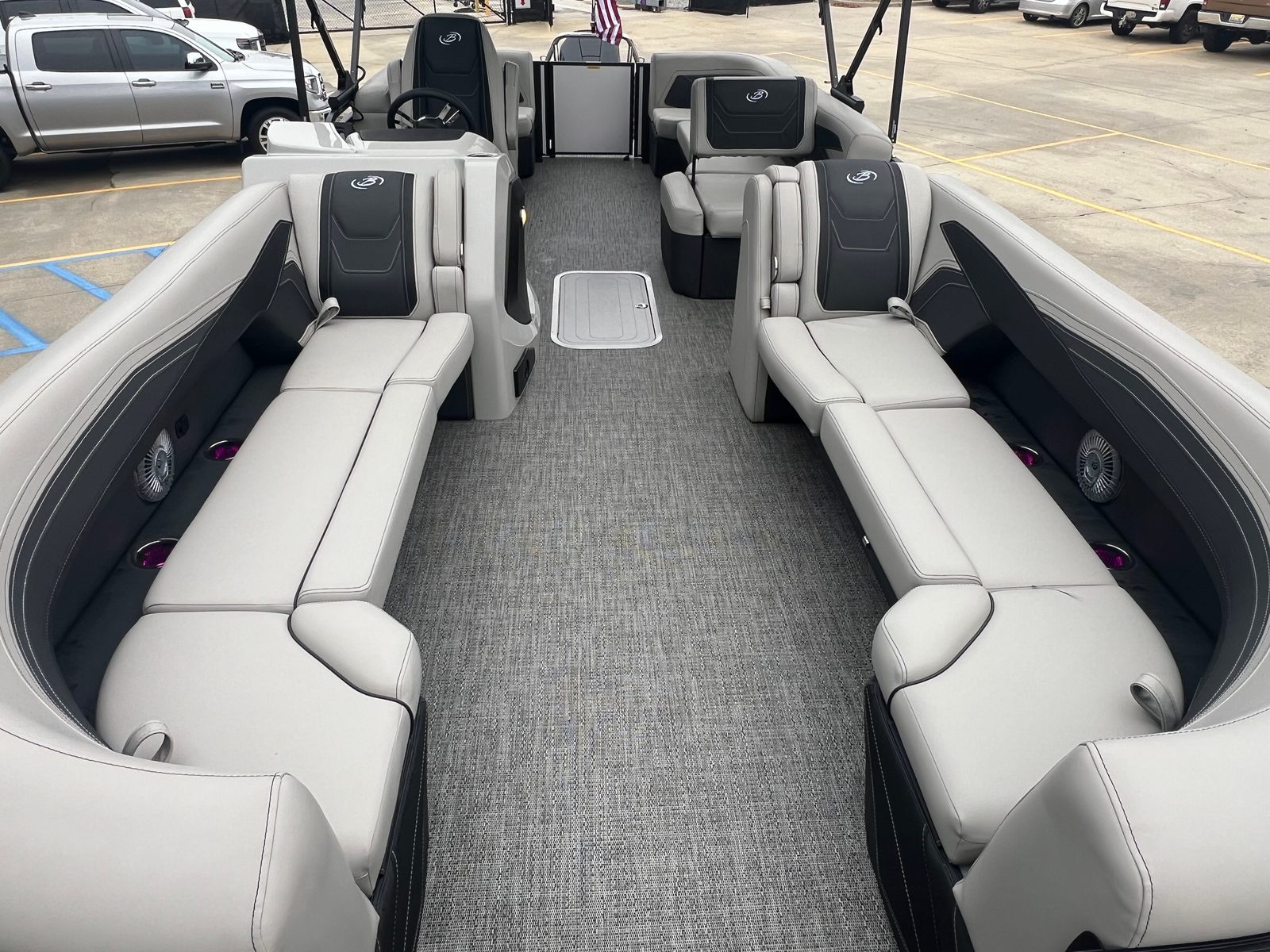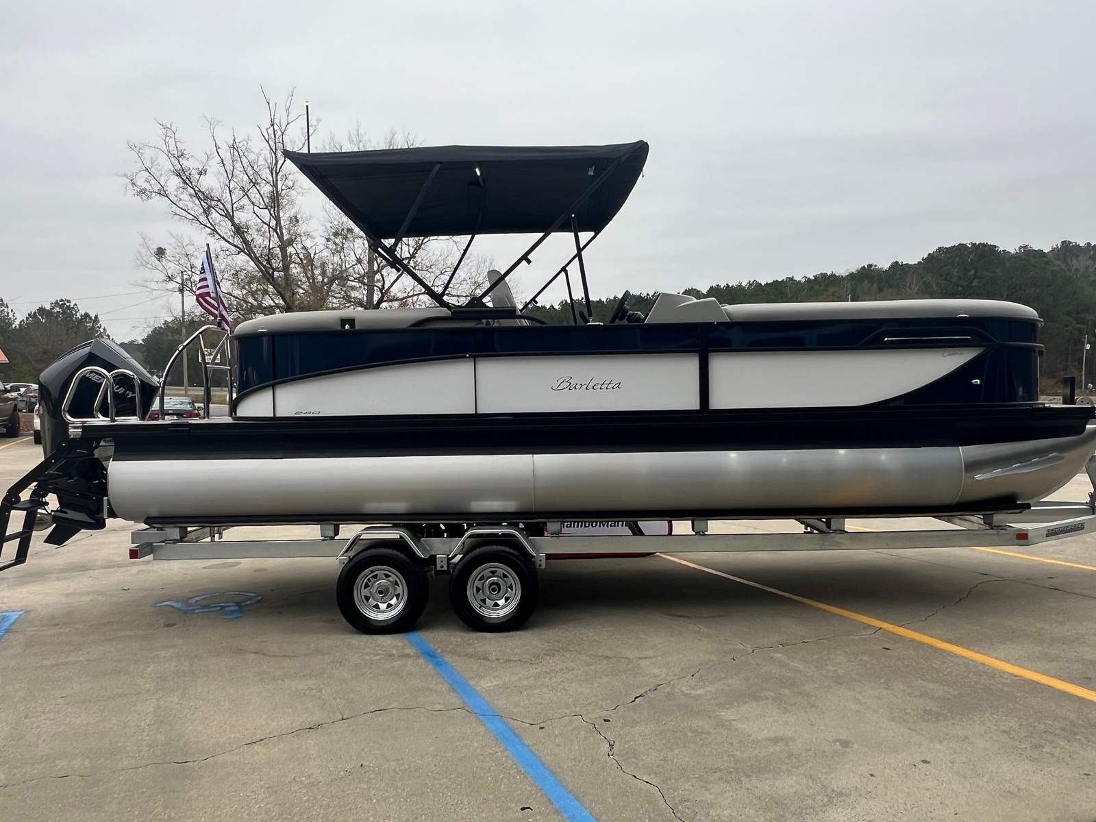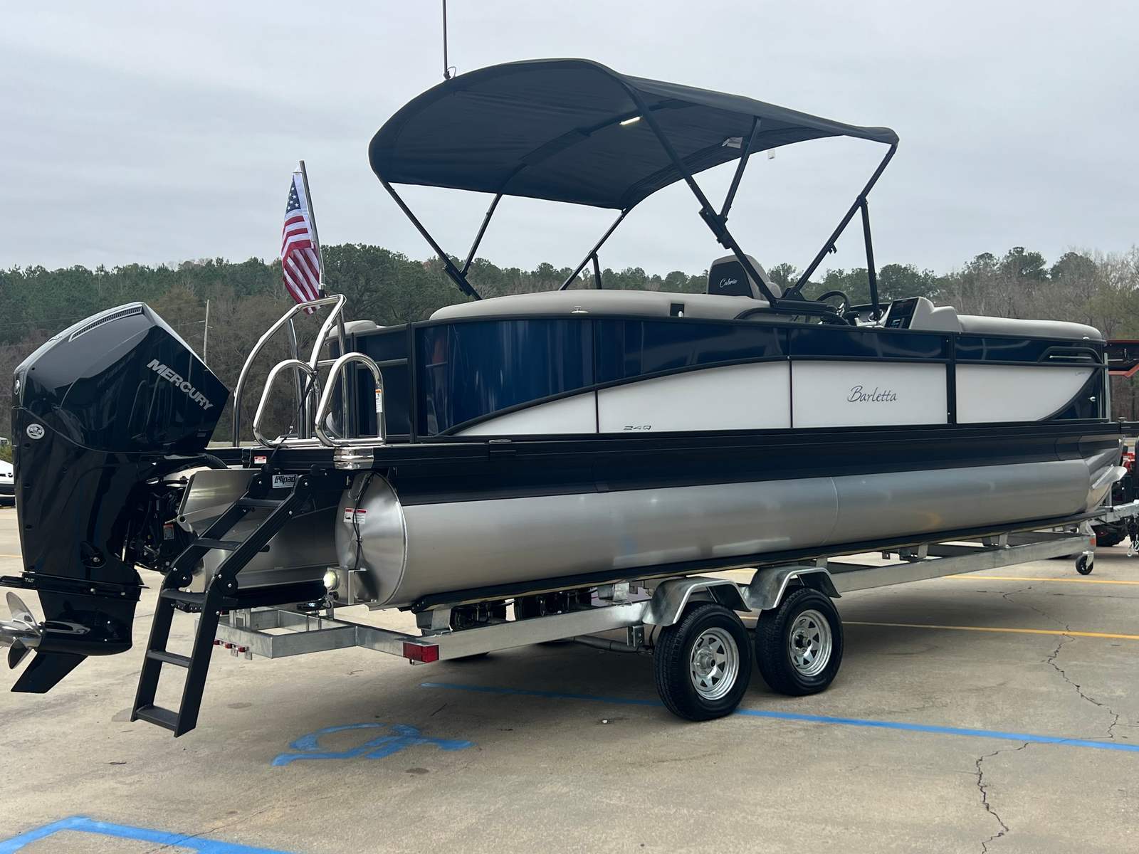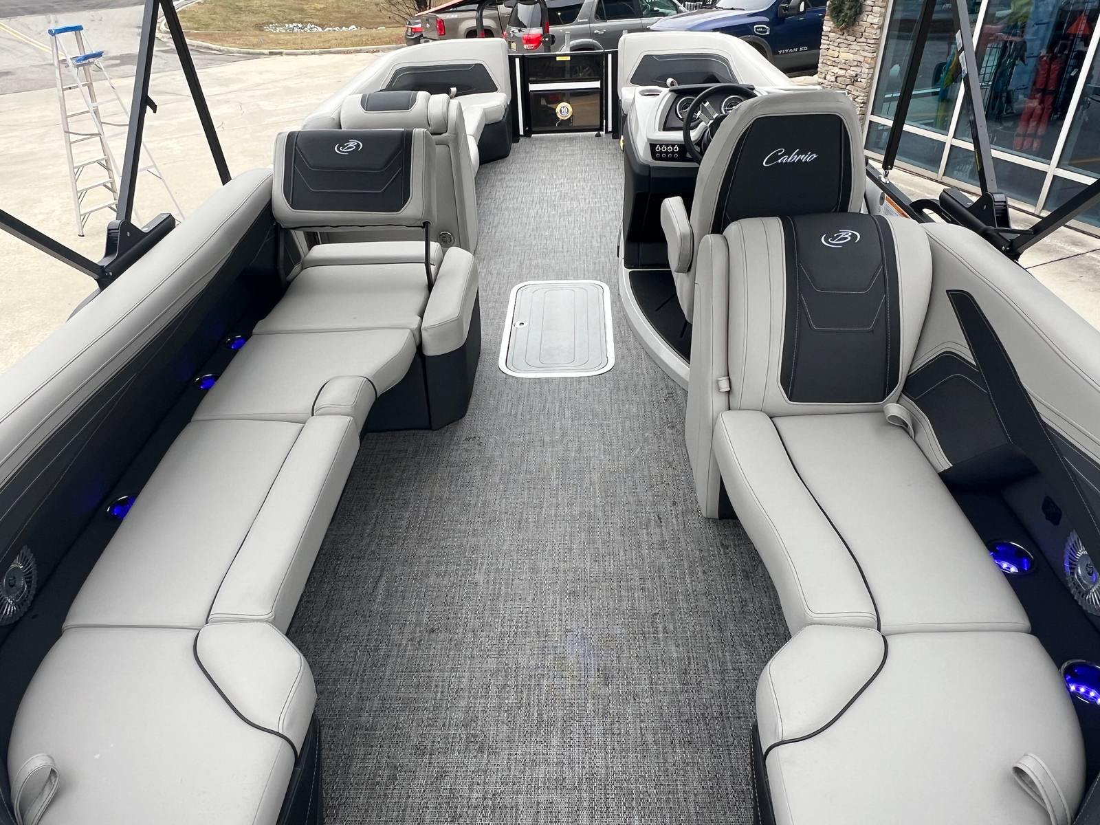 In summary, the 2026 Barletta Cabrio C24Q is a standout pontoon boat for sale that combines cutting-edge design, powerful performance, and luxurious comfort. With its striking Blue Sapphire and Winter White railskin, Blackout Package Cabrio, Marquesan Gray with Onyx furniture, Amore Gray flooring, Triple Toon Package with Midship Storage, Mercury 250L FourStroke engine, and onboard battery charger with two batteries, this Barletta boat for sale offers everything you need for unforgettable days on the water.If you are ready to elevate your boating lifestyle and enjoy the best that modern pontoon design has to offer, the Barletta Cabrio C24Q is the perfect choice. Contact your local dealer today to learn more about this exceptional pontoon boat and start planning your next adventure on the water.
