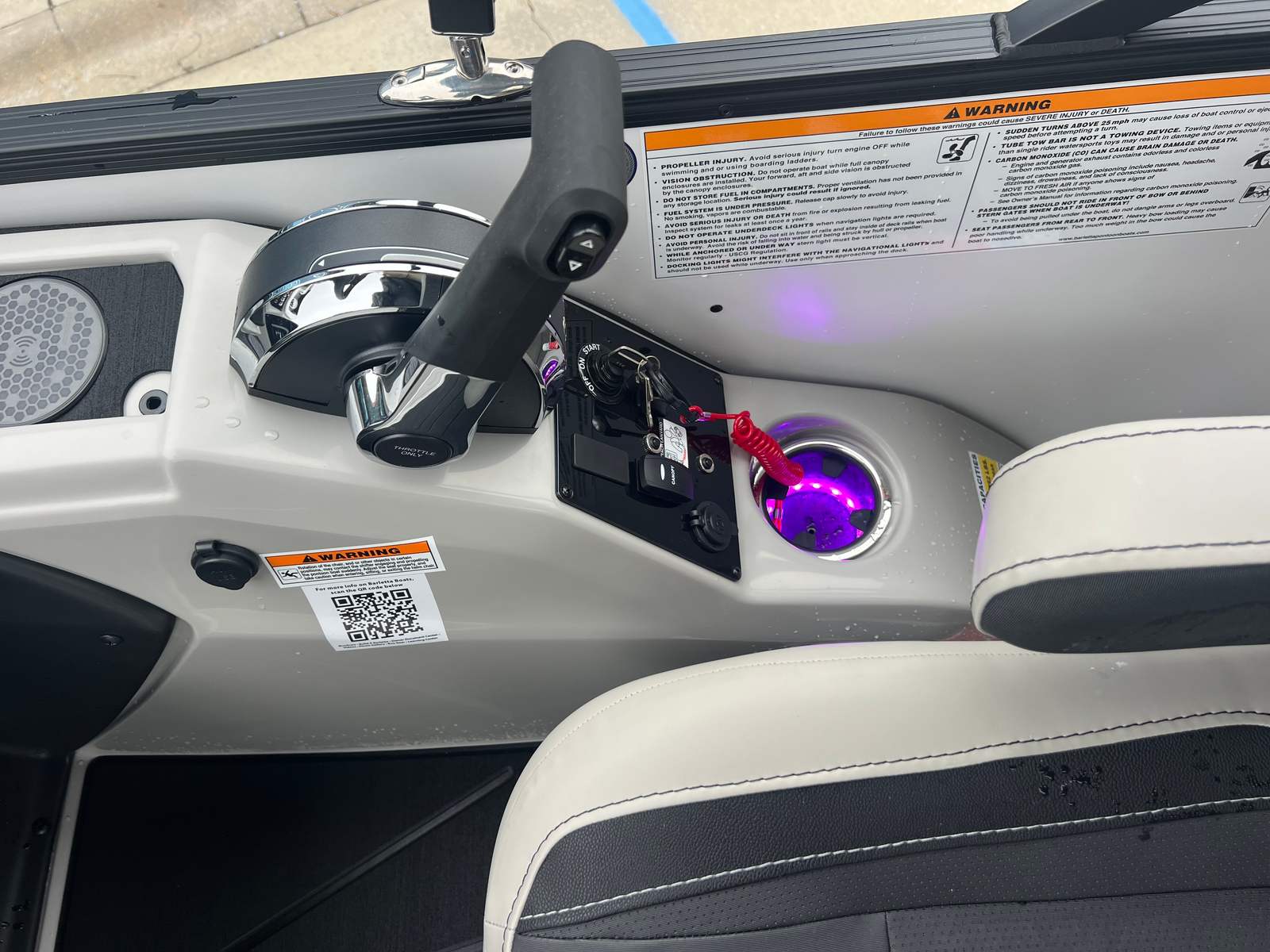 At the heart of the Barletta Cabrio C24Q is a powerful Mercury (M) 250L FourStroke engine, delivering an impressive 250 horsepower. This single-engine setup ensures smooth acceleration, responsive handling, and the capability to reach thrilling speeds when you want to feel the wind in your hair. The Mercury engine is paired with mechanical controls and power assist steering, making navigation effortless and precise. The rigged engine features a stainless steel prop, enhancing both performance and durability for long-lasting reliability. Whether you are towing water toys, cruising with a full crew, or exploring new waterways, the Cabrio C24Q’s performance will exceed your expectations.