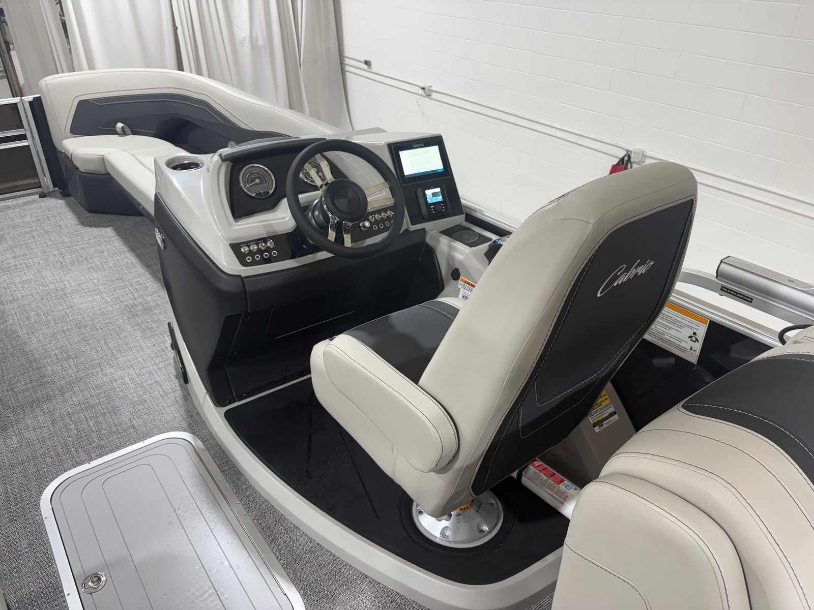 The Barletta Cabrio C24Q is designed with practicality in mind, making ownership as enjoyable as the time spent on the water. The midship storage compartment offers convenient space for stowing life jackets, fishing gear, or picnic supplies, keeping the deck clutter-free and organized. The durable flooring is easy to clean, ensuring your pontoon stays looking its best with minimal effort.Docking and maneuvering are simplified thanks to the power assist steering and reliable Mercury engine, allowing you to navigate marinas and tight spaces with ease. The efficient engine design helps maximize fuel economy, so you can spend more time cruising and less time refueling. The multifunction display provides real-time data and navigation support, making every outing safer and more enjoyable.