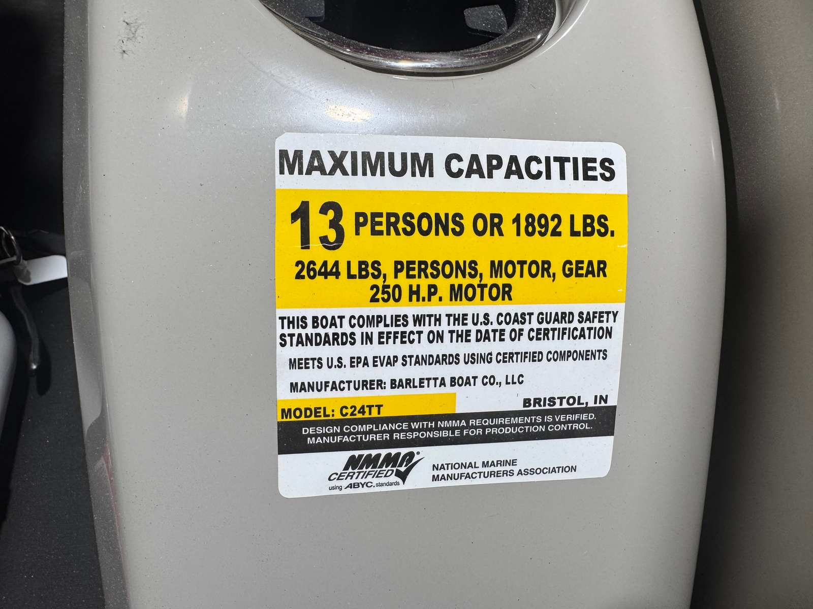 Owning the Barletta Cabrio C24Q means embracing a lifestyle of fun, relaxation, and social connection. The spacious deck layout is perfect for hosting gatherings, whether you are enjoying a sunset cruise, celebrating with friends, or spending quality time with family. The plush seating and thoughtful design provide unmatched comfort, allowing everyone on board to unwind and enjoy the journey.The combination of high-quality materials and innovative features ensures that every trip is as enjoyable as it is memorable. The powerful Mercury engine delivers the performance you need for tubing, wakeboarding, or simply exploring new waters, while the advanced rigging and power assist steering make handling effortless for boaters of all experience levels.