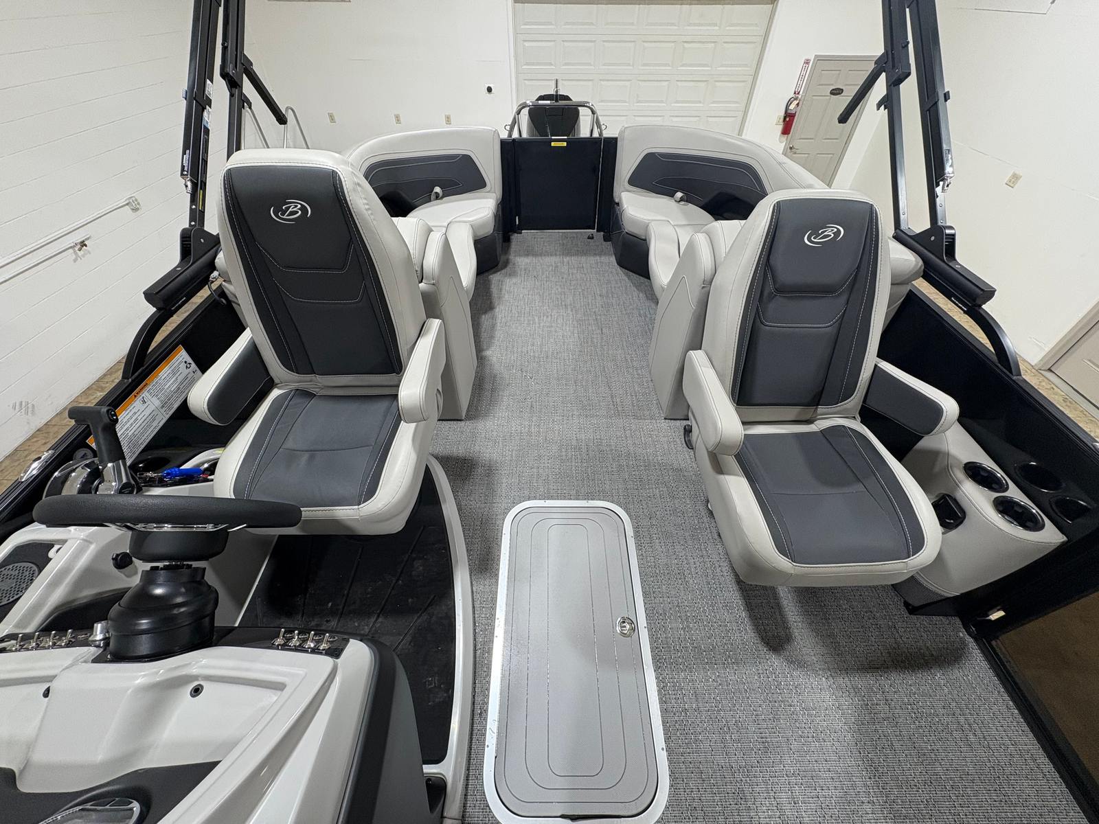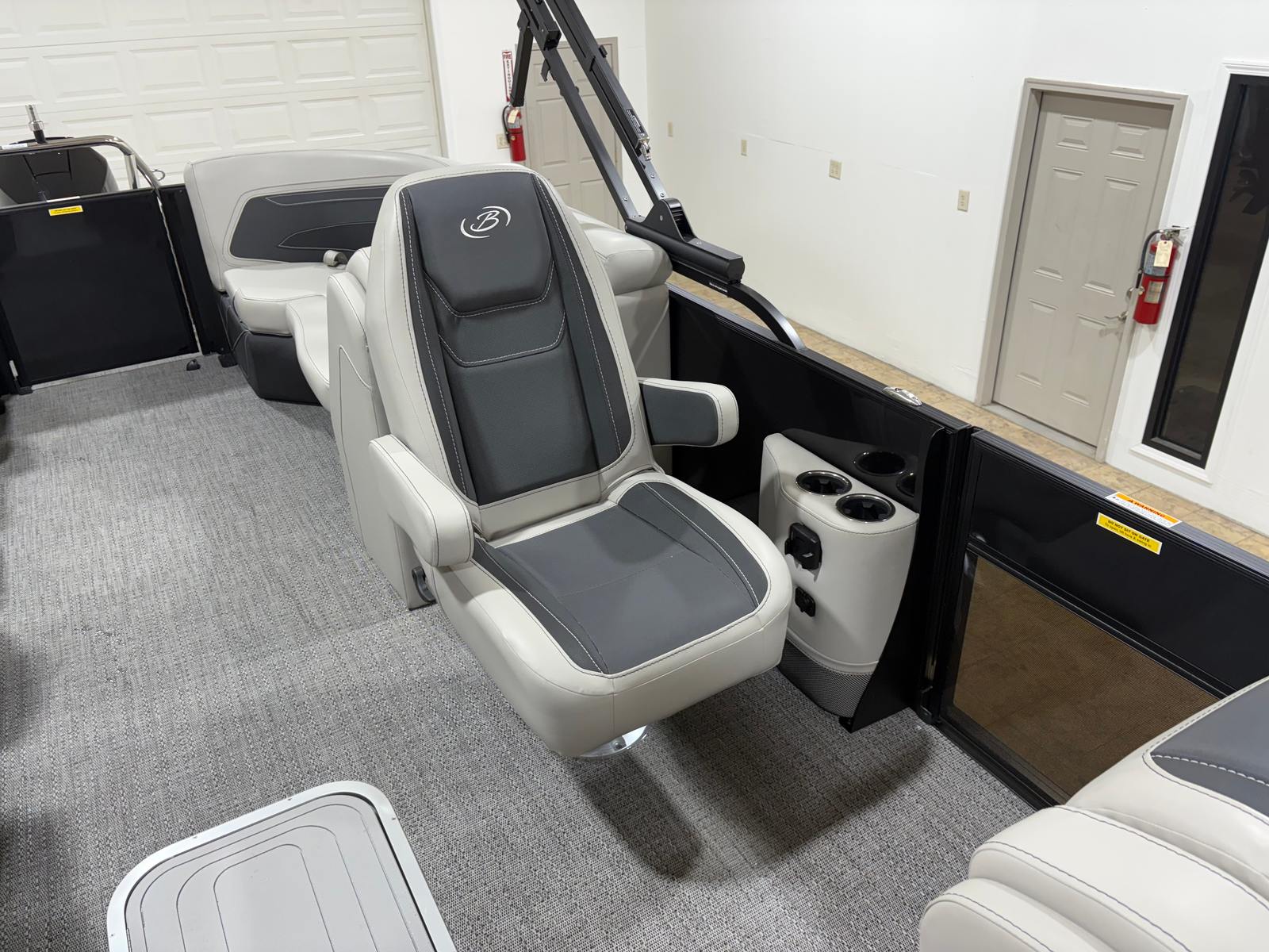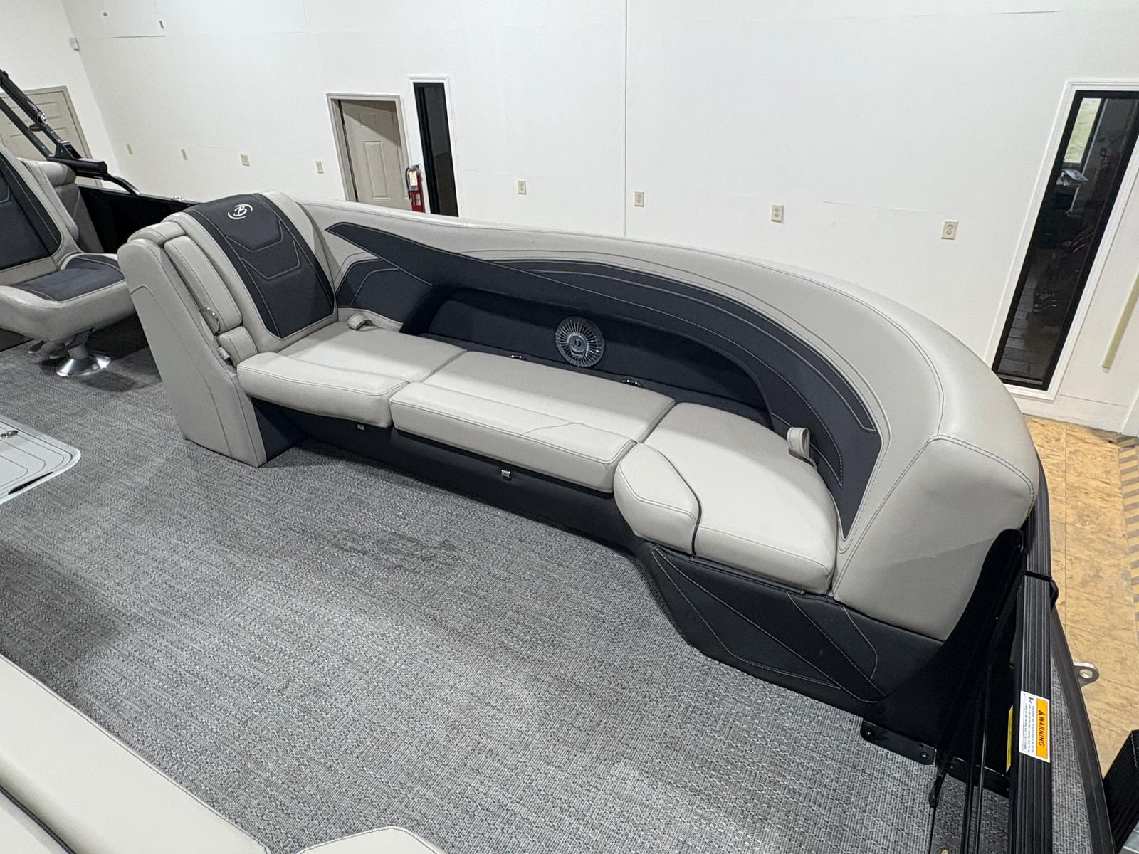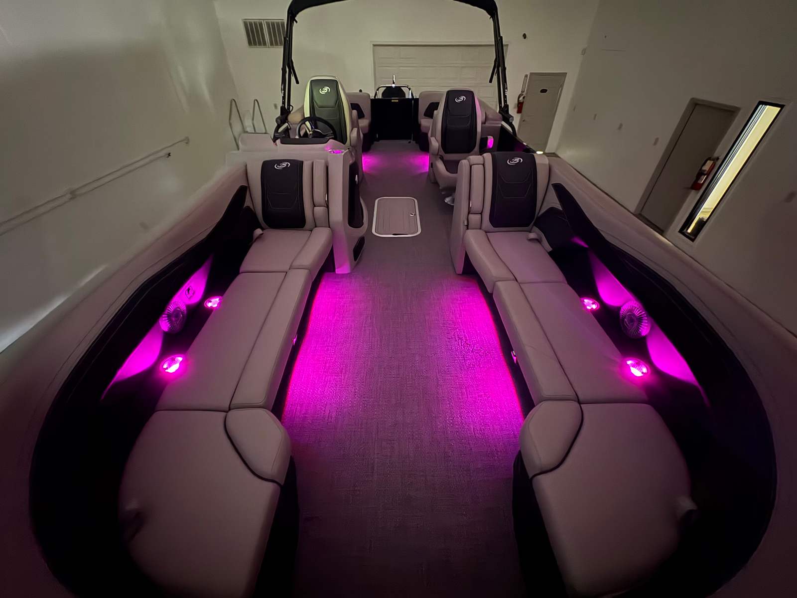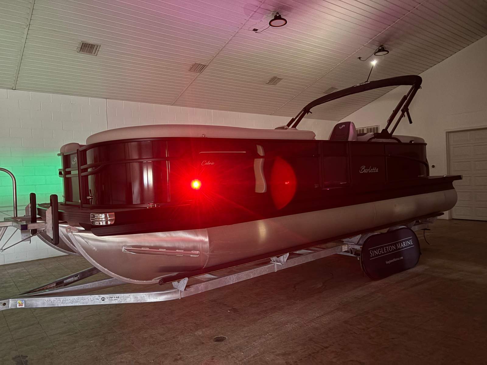 The 2026 Barletta Cabrio C24QC is packed with premium features that set it apart from other pontoon boats for sale. The Blackout Package Cabrio gives the exterior a bold, modern look, while the Black Diamond railskin adds a touch of sophistication. Inside, the Marquesan Gray with Onyx furniture provides a comfortable and stylish setting for passengers, complemented by the Amore Gray flooring that is both durable and easy to maintain.One of the standout features of this model is the Triple Toon Package with midship storage, offering enhanced stability and ample space for storing gear, water toys, or picnic essentials. The rigging includes a stainless steel prop for optimal performance and durability. For those who appreciate attention to detail, the stainless steel flag pole with an American flag adds a patriotic touch to your boating adventures.The interior RGB lighting package creates a vibrant and customizable atmosphere, perfect for evening cruises or entertaining guests after sunset. Every element of the Cabrio C24QC is designed to maximize comfort, convenience, and enjoyment on the water.