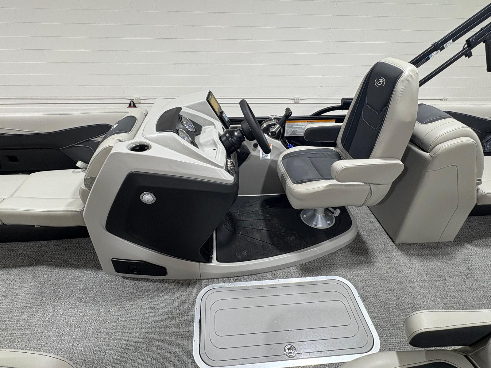 At the heart of the Cabrio C24QC is a powerful Mercury 250L FourStroke engine, delivering an impressive 250 horsepower with only 1 engine hour. This robust engine ensures smooth acceleration, responsive handling, and plenty of power for cruising, watersports, or simply exploring your favorite waterways. The pre-rig Mercury mechanical system with power assist (200HP) and stainless steel prop further enhance the boat’s performance, providing effortless control and reliability. Whether you are gliding across calm waters or picking up speed for a thrilling ride, the Cabrio C24QC offers a dynamic boating experience.