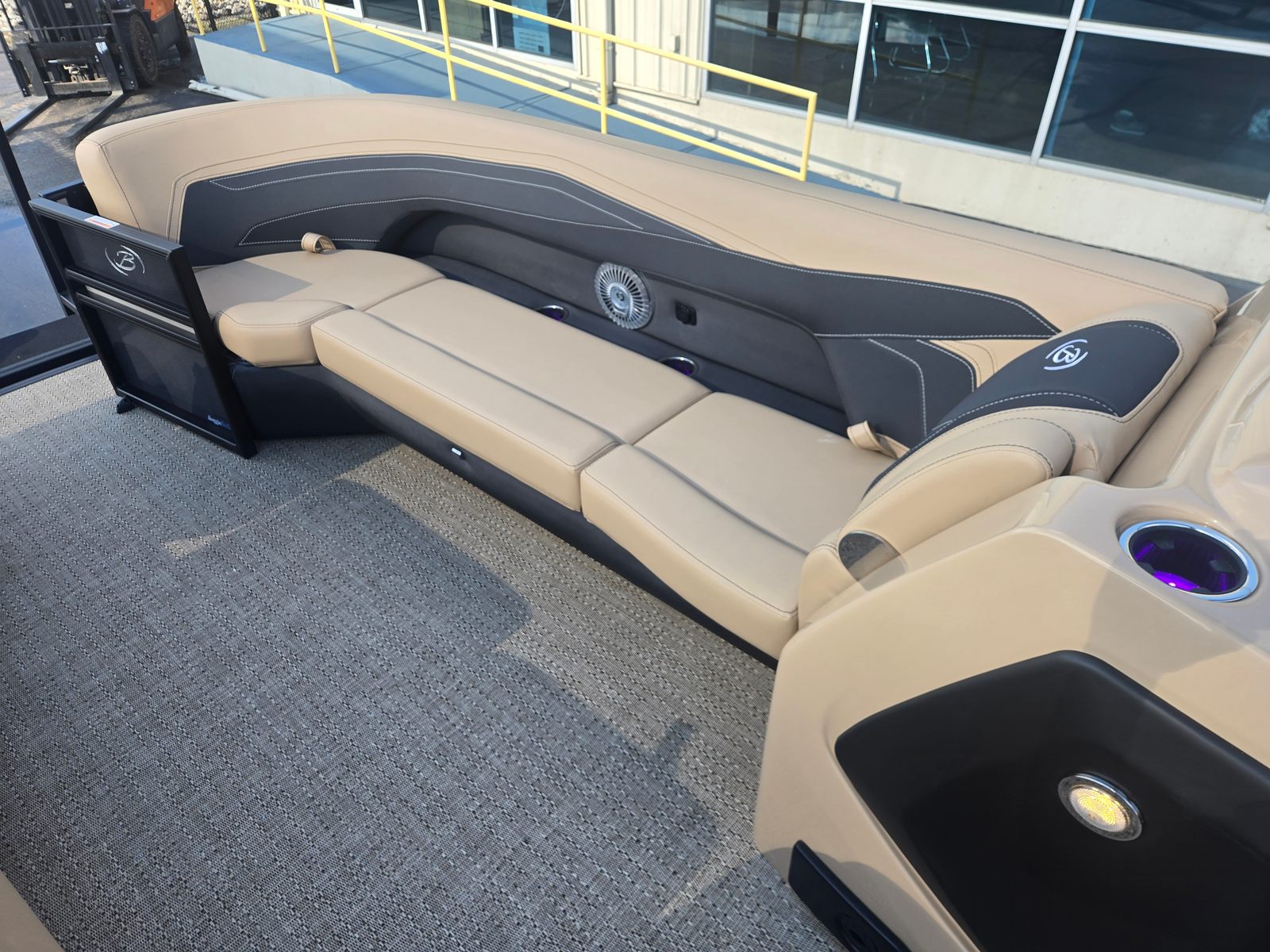 The 2026 Barletta Cabrio C24QC is a 25-foot pontoon boat that stands out for its modern design and attention to detail. With a length of 25.17 feet, this pontoon offers ample space for socializing, lounging, and making memories on the water. The sleek Railskin Color in Black Diamond, accented with Champagne, gives the Cabrio C24QC a sophisticated and eye-catching appearance. The Blackout Package Cabrio adds a touch of elegance and exclusivity, ensuring that this Barletta boat for sale turns heads wherever it goes. The Carmella Tan with Onyx furniture and Amore Tan flooring create a warm and inviting atmosphere, making every outing feel like a special occasion.