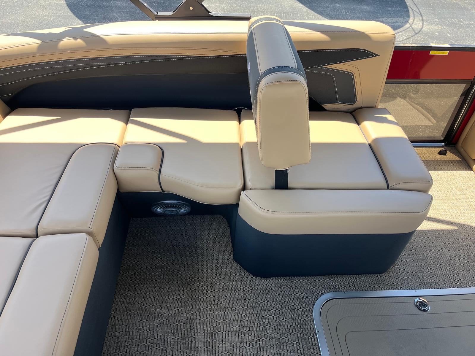 The 2026 Barletta Cabrio C24U is thoughtfully crafted to enhance every moment on the water. Its spacious 25.17-foot deck provides ample room for relaxation, entertainment, and socializing. The open layout is perfect for hosting gatherings, with plenty of comfortable seating for guests to lounge and enjoy the scenery. High-quality materials and attention to detail are evident throughout, ensuring a luxurious and inviting atmosphere.This pontoon boat is equipped with innovative features that elevate your boating experience. The design prioritizes both style and functionality, making it easy to transition from sunbathing to dining or from swimming to cruising. The Cabrio C24U's construction is built to last, offering durability and peace of mind for years of enjoyment.
