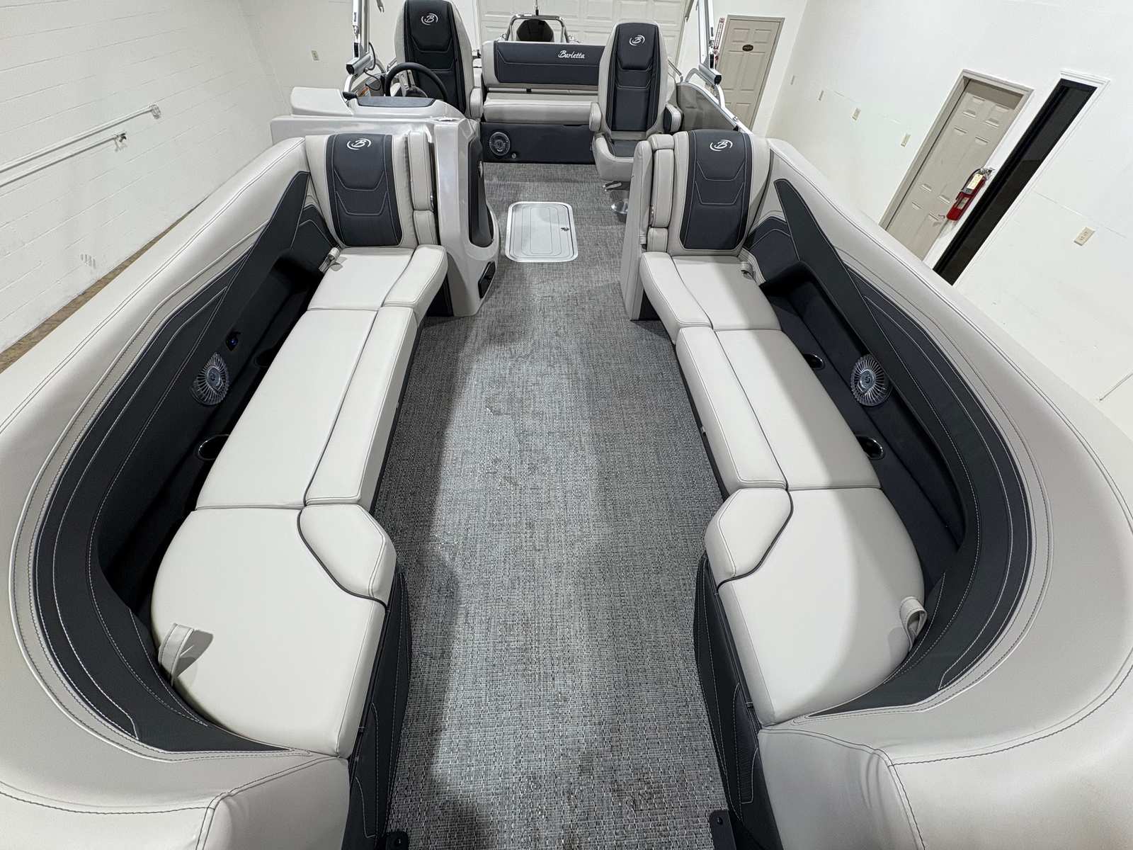 The Barletta Cabrio C24UC is engineered for convenience and practicality, making ownership a pleasure from day one. Its generous length provides ample space for guests and gear, while the triple toon package ensures easy docking and superior stability. The Mercury Verado V8 engine offers excellent fuel efficiency, reducing trips to the fuel dock and maximizing your time on the water.Midship storage is a game-changer for keeping your belongings secure and accessible, while the durable flooring stands up to heavy use and is simple to clean. Stainless steel safety stanchions with chains provide added security for passengers, especially when children or pets are aboard. The digital gauges and Vessel Link system keep you informed about your boat’s performance, so you can focus on enjoying your day.