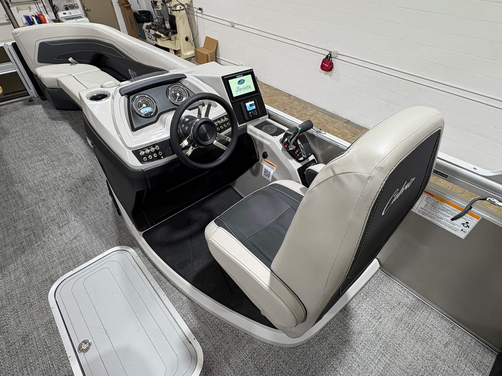 The 2026 Barletta Cabrio C24UC stands out as a premier pontoon boat, measuring an impressive 25.17 feet in length. Its sleek profile and contemporary design make it a head-turner at any marina or dock. Crafted with meticulous attention to detail, this new pontoon boat combines innovative engineering with sophisticated aesthetics, ensuring you enjoy both form and function. The Cabrio C24UC is built for those who appreciate quality, versatility, and a touch of elegance in their boating adventures.