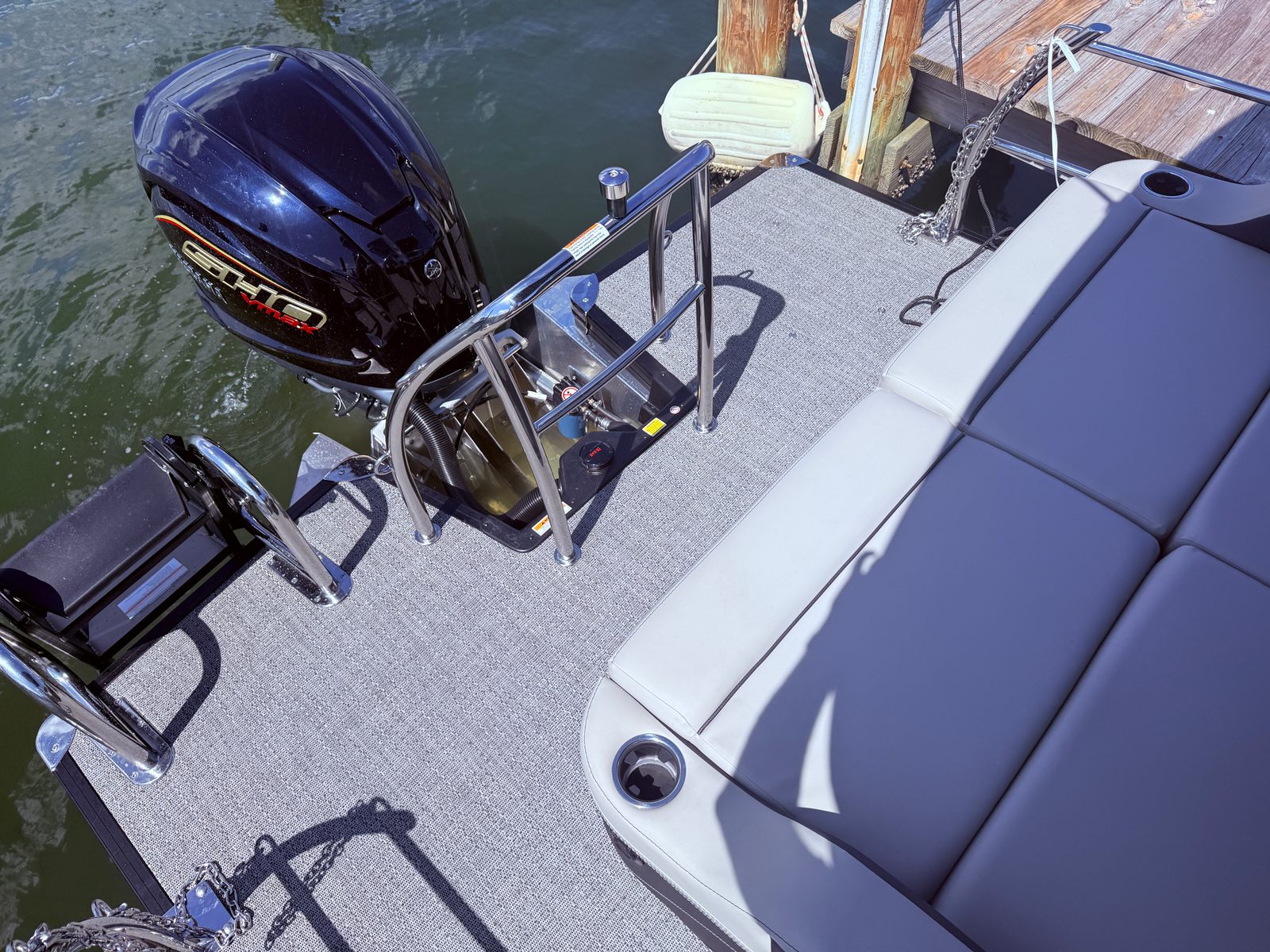 Powering the Barletta Cabrio C24UC is a robust 250-horsepower engine, expertly rigged with a stainless steel prop for optimal efficiency and reliability. This single-engine configuration ensures smooth acceleration, responsive handling, and impressive speed, making it easy to cruise across the water with confidence. The Cabrio C24UC’s advanced engineering delivers a quiet, fuel-efficient ride, allowing you to spend more time enjoying the journey and less time worrying about maintenance. Whether you’re exploring new waterways or towing water toys, this pontoon’s performance capabilities are sure to impress.